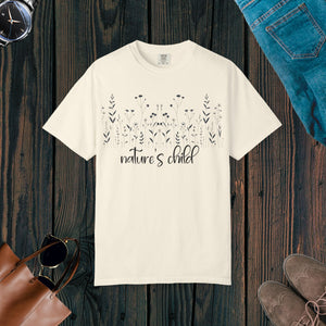 Floral Print Unisex Garment-Dyed T-Shirt - Casual Nature-Inspired Tee