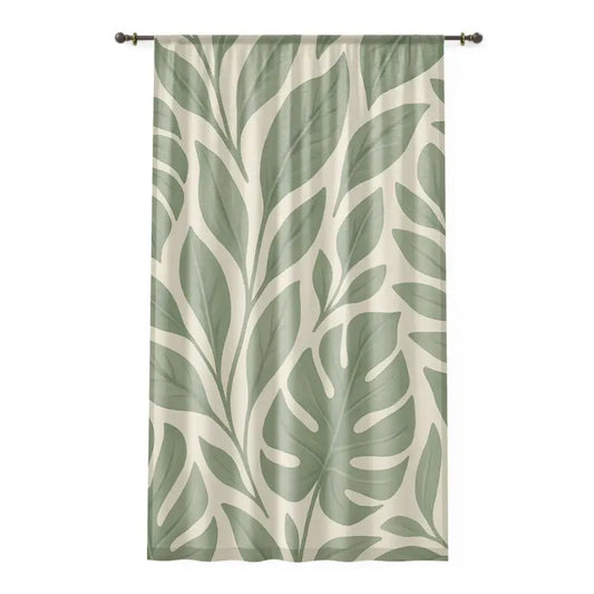 Botanical Eucalyptus Sheer Window Curtain Soft Green Leaf Pattern - DipaliZ