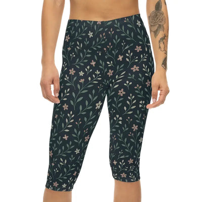 Capri Leggings Cosmic Moon Stars Pattern Navy Gold - DipaliZ