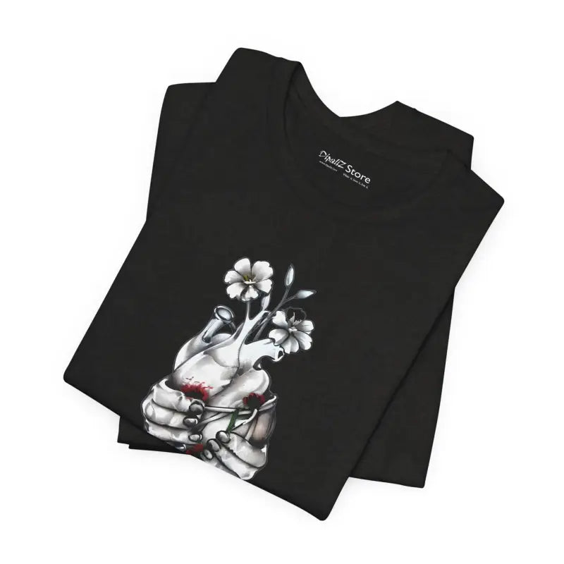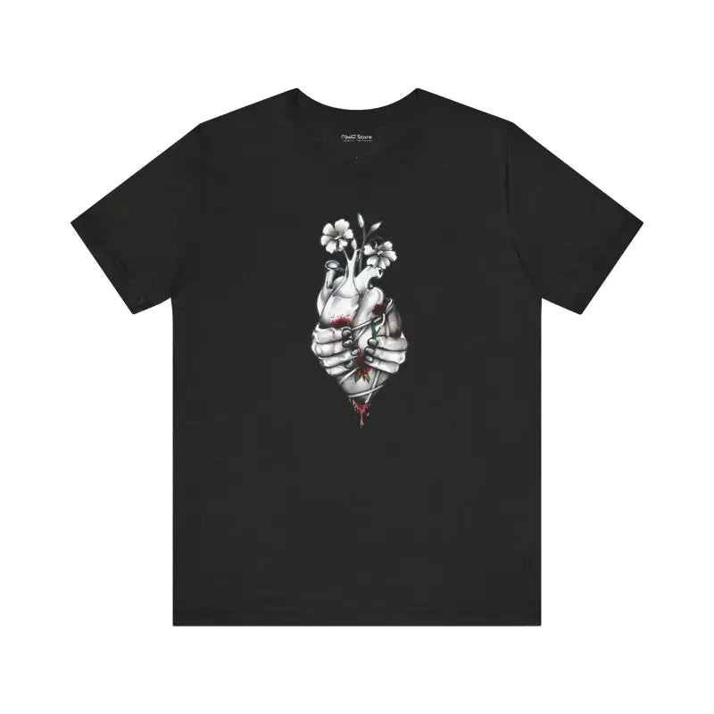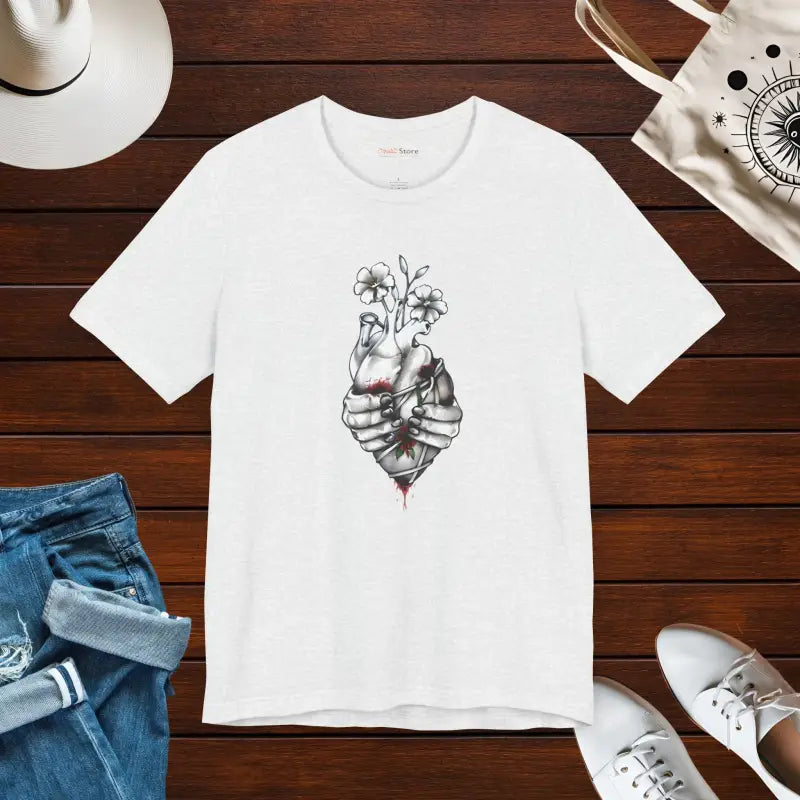 Bandaged Heart Jersey Short Sleeve Tee with Floral Blood Art - DipaliZ