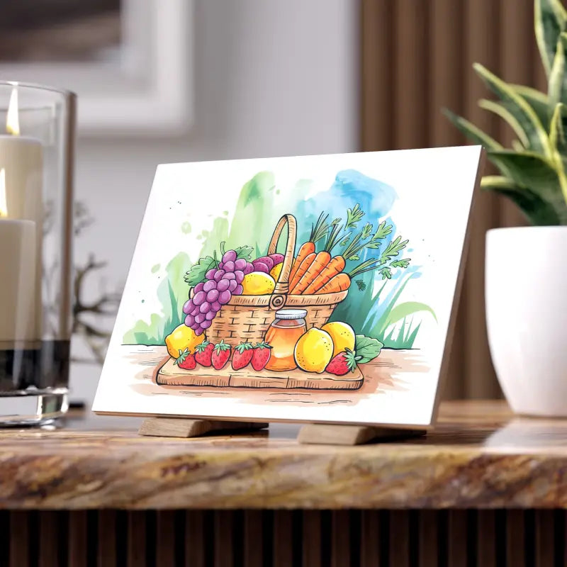 Print: Vibrant basket of fruits design bursting with freshness and vitality, perfect for energizing any room.