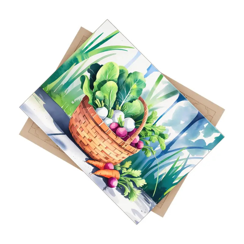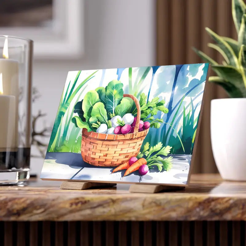 Print: An enticing portrayal featuring a luscious basket filled with fresh vegetables, capturing nature's bounty that invigorates your walls with a burst of color and life.