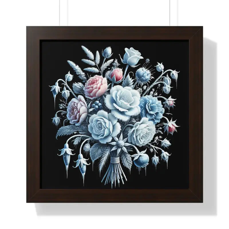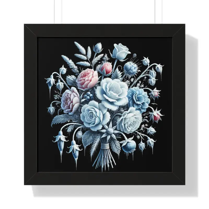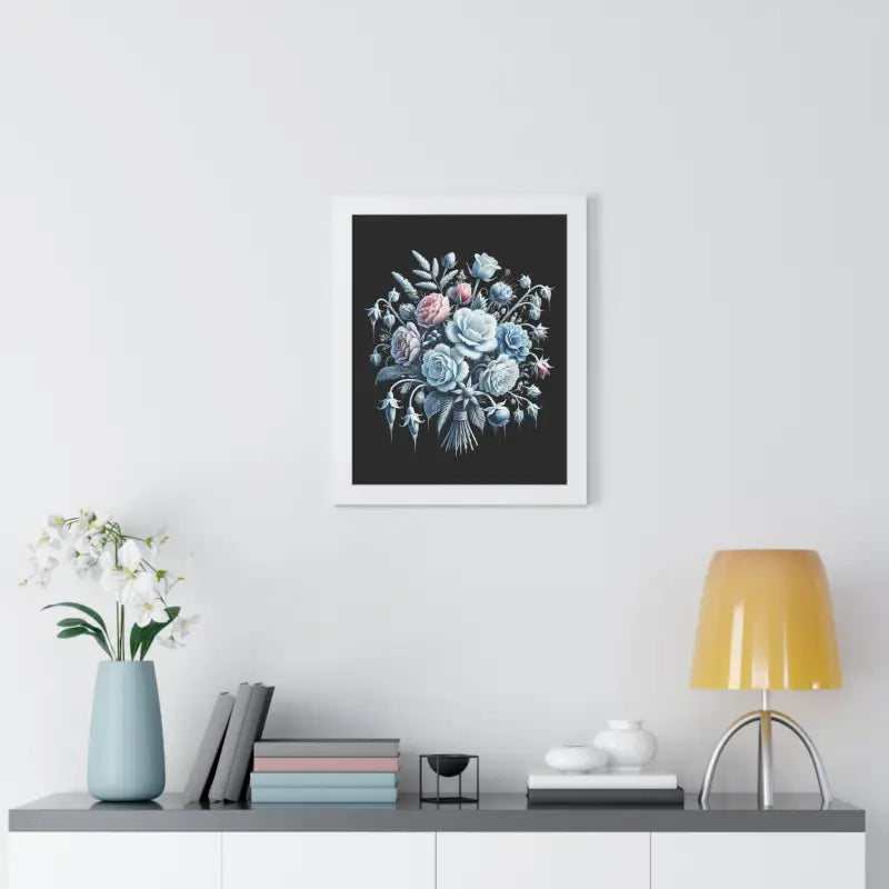 Overflowing with style, this elegant framed vertical poster fuses art and modern décor for a look that never goes out of fashion. Transform your home into a soothing retreat—order now and let the serene beauty of frosted flowers uplift your everyday.