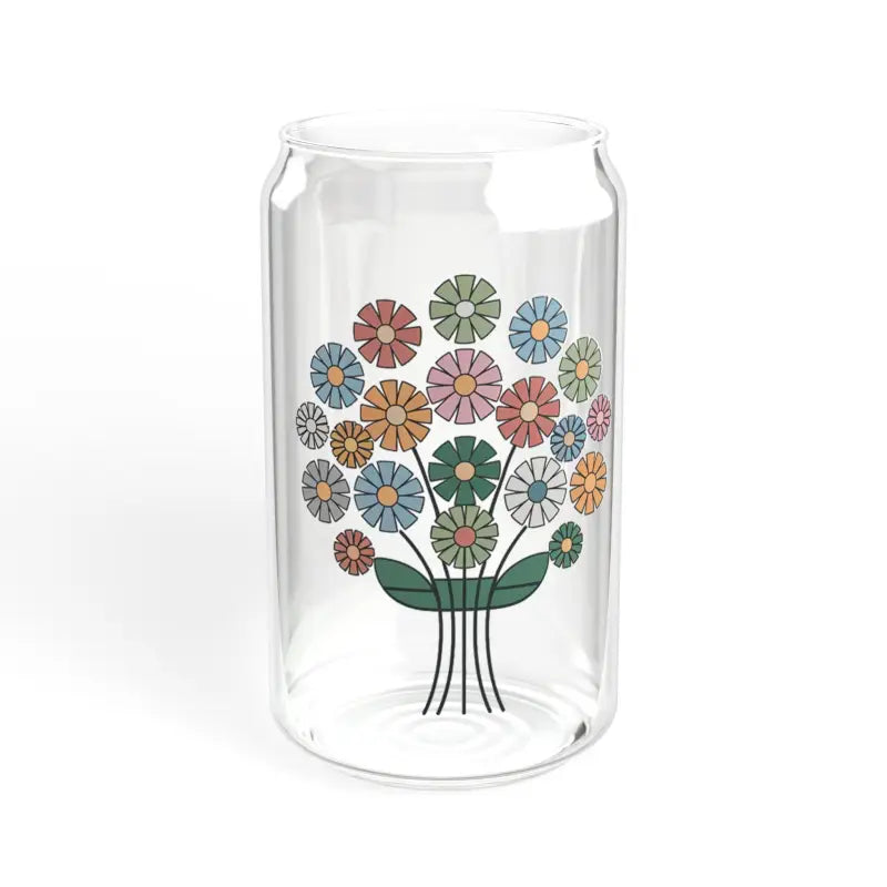 A bunch of flowers, BPA free, Sipper Glass, 16oz. Quench your thirst in style with our 16oz Sipper Glass. Made from clear tempered glass, it's durable, sleek, and perfect for refreshing cocktails, juices, or any beverage you fancy. Choose between the classic version or opt for the version equipped with a Gasket-push Bamboo lid and Tritan straw for added convenience. This sipper glass is FDA Certified, BPA Free, and Cal. Prop 65 compliant, ensuring your safety and peace of mind with every sip.
