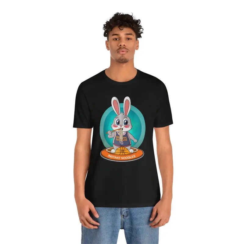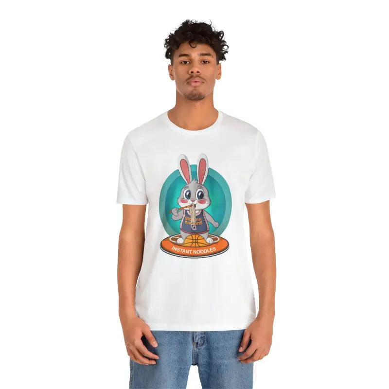 This unisex jersey short sleeve tee forms a bridge between playful design and practical fashion. It gives any outfit a laid-back sporty vibe, whether you're making an impression on the court or grabbing coffee with friends. The vibrant bunny basketball graphic sets you apart, making it a staple in your everyday rotation. Ideal for layering or wearing solo, it's incredibly adaptable without sacrificing an ounce of style.