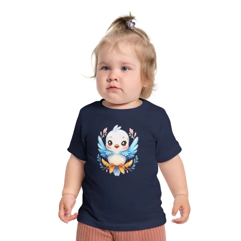 Introducing the ultimate blend of luxury and comfort for your little one's wardrobe—the Luxury Birdie Baby Tee! This short sleeve tee is the quintessential fashion piece for every mini trendsetter. Crafted with premium 100% airlume combed and ringspun cotton, this adorable short sleeve t-shirt ensures that your baby experiences absolute delight from morning playtime to evening cuddles. Wave goodbye to scratchy fabric woes and say hello to a world of soft, snuggly bliss. Whether it's family photo day or a surprise playdate, this tee ensures your baby remains both stylish and comfortable in any scenario. And, trust us, your little one will become the talk of the playground!