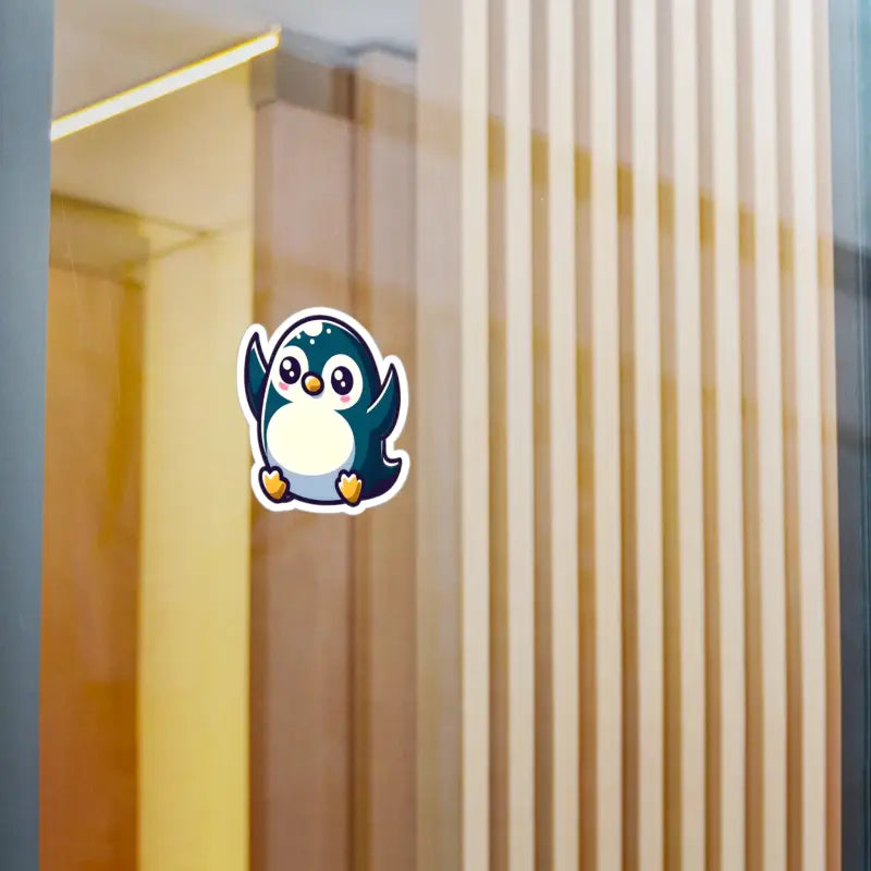 Print: A cute penguin design printed on high-quality white vinyl with a satin finish and detailed 1/8 kiss-cut border around the sticker.