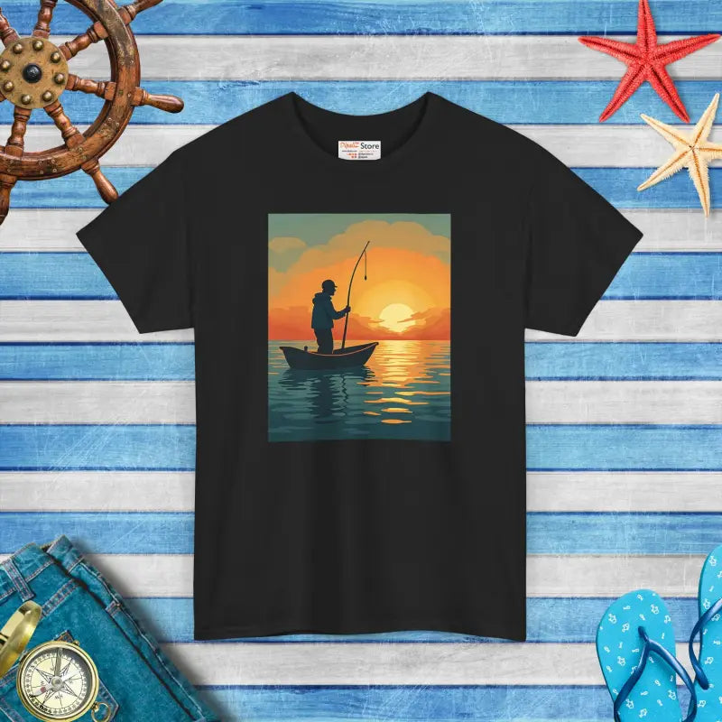 Ready to experience the ultimate in comfort and style? Grab your Unisex Heavy Cotton Sunset Fisherman Tee today and feel the difference! This heavy cotton tee is an investment in comfort, style, and lasting quality. Dont miss out – order yours now!