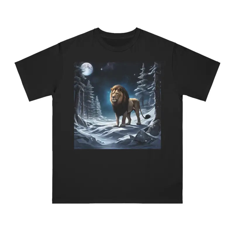 Step out in the hypnotic presence of a majestic grey lion silhouetted by moonlight—more than just a classic t-shirt, it’s a wearable piece of art. Elevate your women’s fashion with this unforgettable design and let your wild spirit shine every day. Don’t just dress—express yourself!