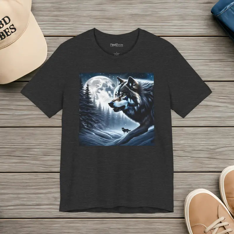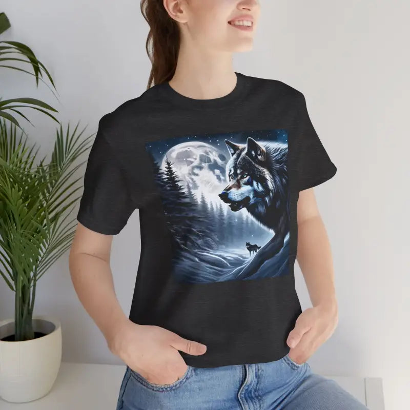 Unisex Jersey Short Sleeve Tee Wolf Moon Winter Night - DipaliZ