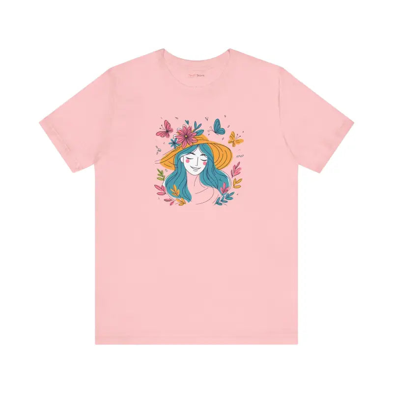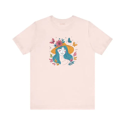 Step into a whimsical world with the Flower Hat & Butterflies Unisex Jersey Short Sleeve Tee. This tee effortlessly combines comfort and charm, offering a soft embrace with its gentle cotton fabric. The vibrant print of a woman adorned with a flower hat and fluttering butterflies adds a unique flair to your casual ensemble. Designed for optimal fit, this tee features ribbed knit collars and taped shoulders to ensure it maintains its shape throughout countless adventures. The unisex jersey cut caters to all, making it a versatile staple for any wardrobe.