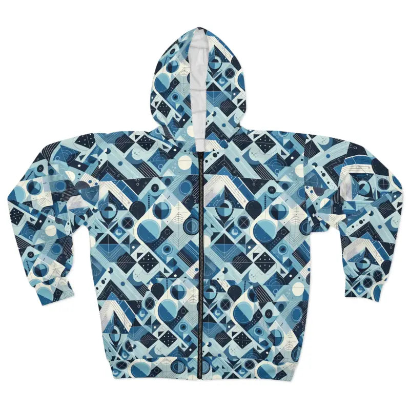 Feel the soft embrace of cloud-like fleece every time you zip up this unisex zip hoodie—an abstract blue checkered masterpiece designed for modern lifestyle essentials and endless adventures.