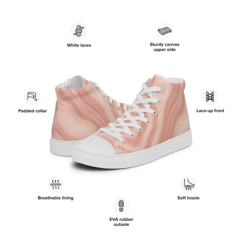 Freshly laced and ready to turn heads, these high top canvas shoes bring abstract coral pink vibes to every step—feel the soft breeze against your soles and imagine the pop of color amid city streets or sunny park paths.