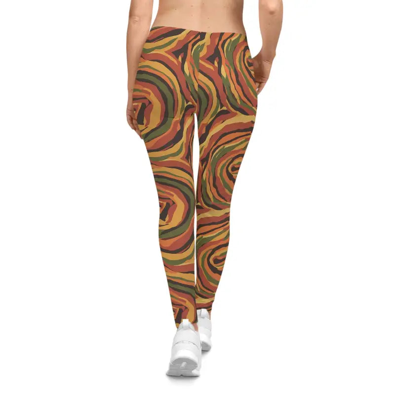 Picture yourself wrapped in swirling autumn hues that move like liquid art across premium women's fashion and home decor worthy fabric. Rich rusts dance with olive greens, warm mustards blend into deep cocoa tones, creating patterns that look like nature's own masterpiece. The spiral design flows with every step, making these leggings feel like wearable art that was custom-made just for you.