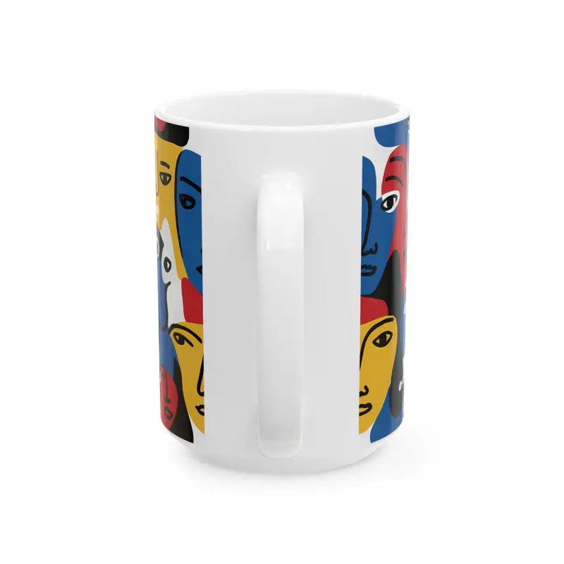 Transform your morning ritual with this stunning abstract faces ceramic mug that brings bold gallery-worthy design straight to your hands. Watch vibrant personalities emerge through blocks of red, blue, yellow, and black dancing across pristine white ceramic with every sip.