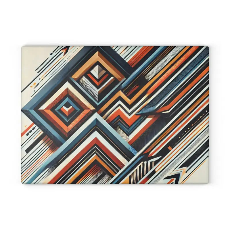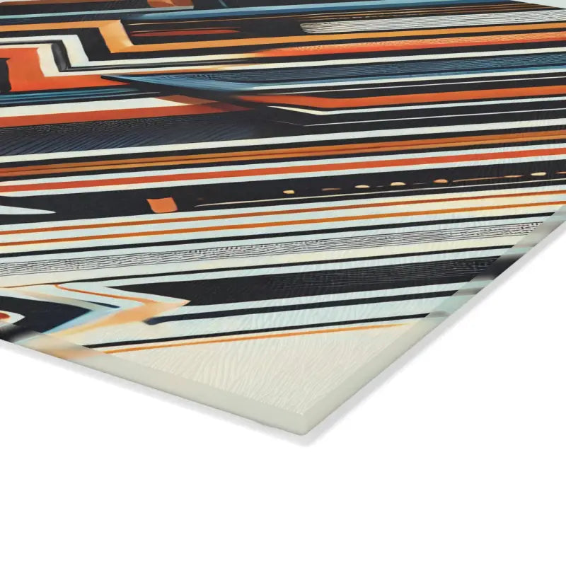 Bring a pop of personality to your cooking routine with this abstract glass cutting board featuring a striking abstract geometrical pattern and four rubber dots for maximum stability. Make your countertop safer, keep your style on-point, and show off your love for bold kitchen design. Don’t settle for boring—add an artistic flair to your space today!