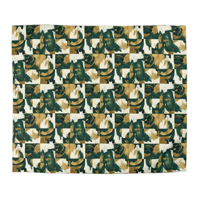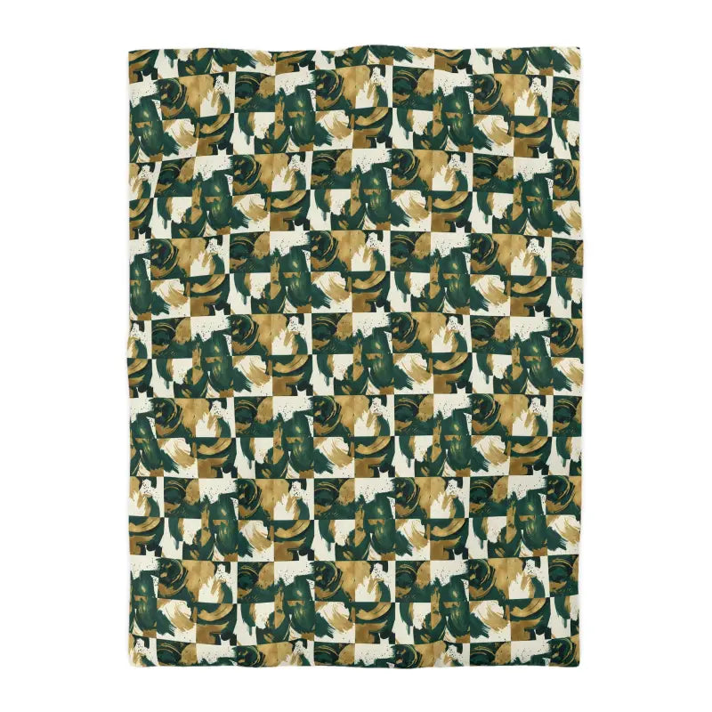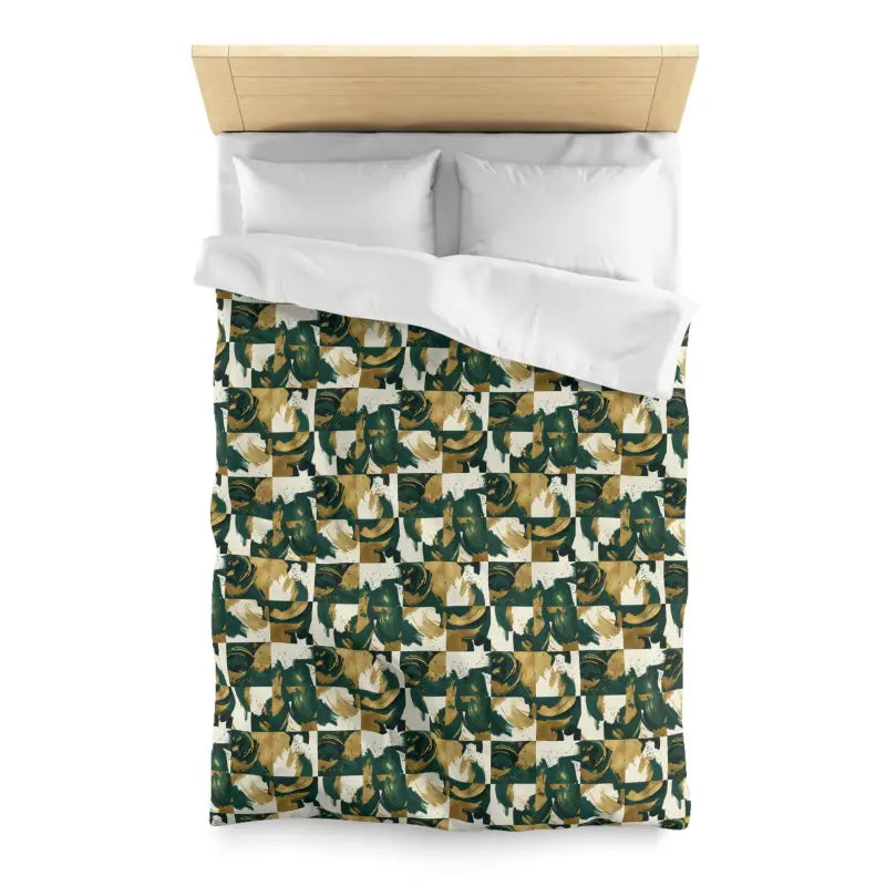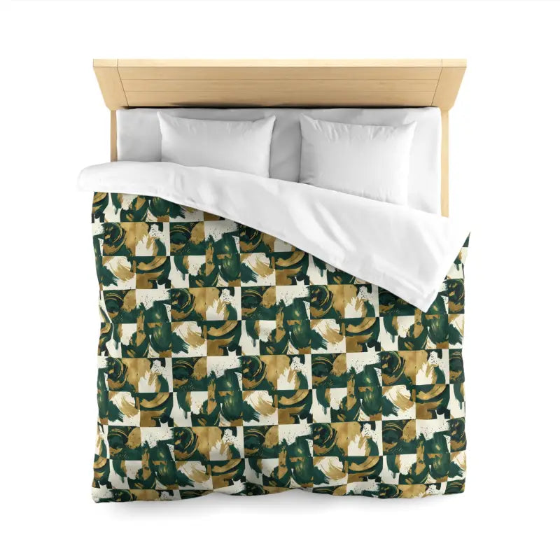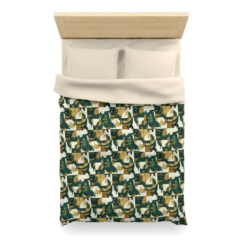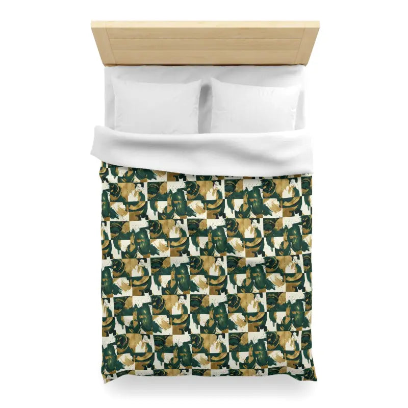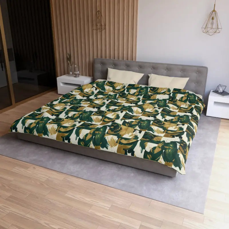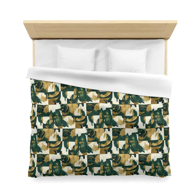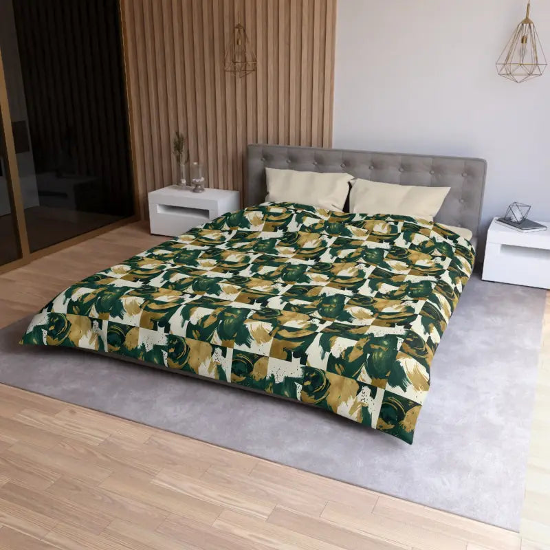 Transform your bedroom into a nature-inspired retreat with this abstract green camouflage duvet cover that brings earthy sophistication to your sleep sanctuary. Rich forest greens dance with warm golden ochres across soft microfiber fabric, creating an organic pattern that soothes the senses and elevates your space.
