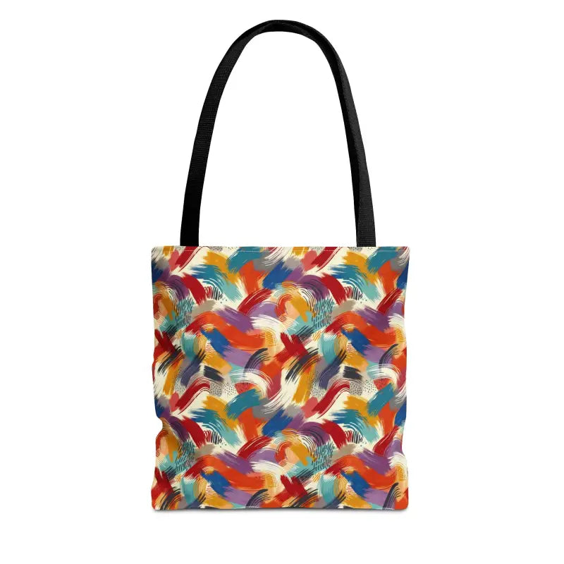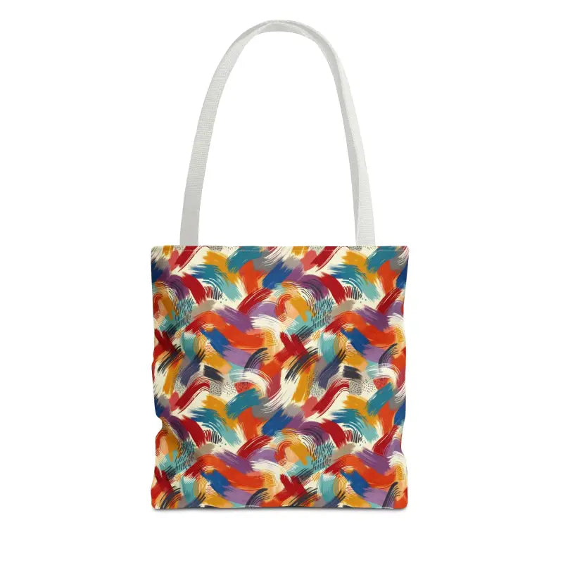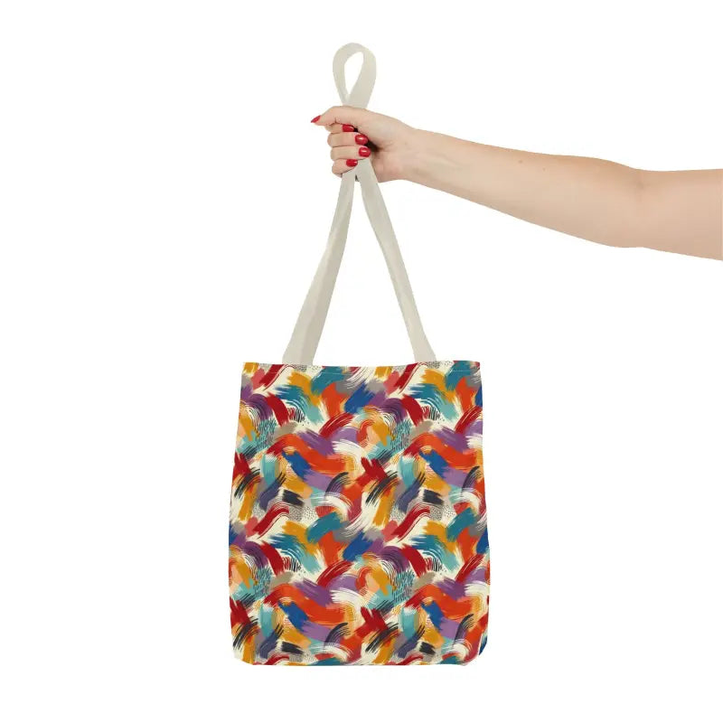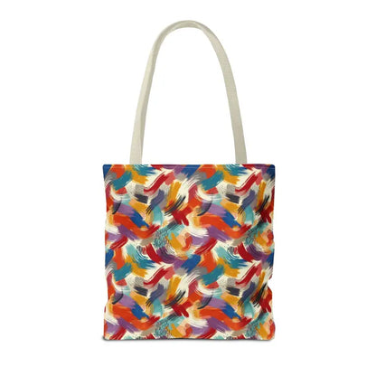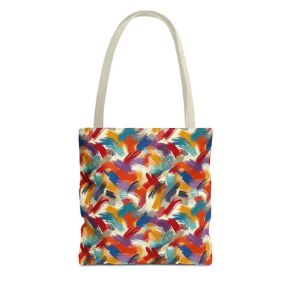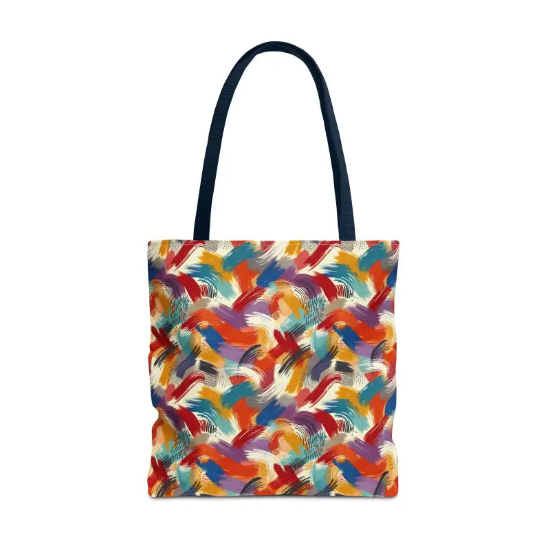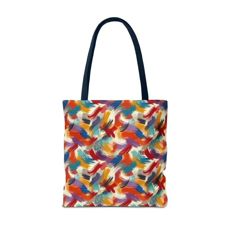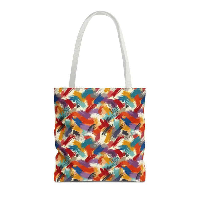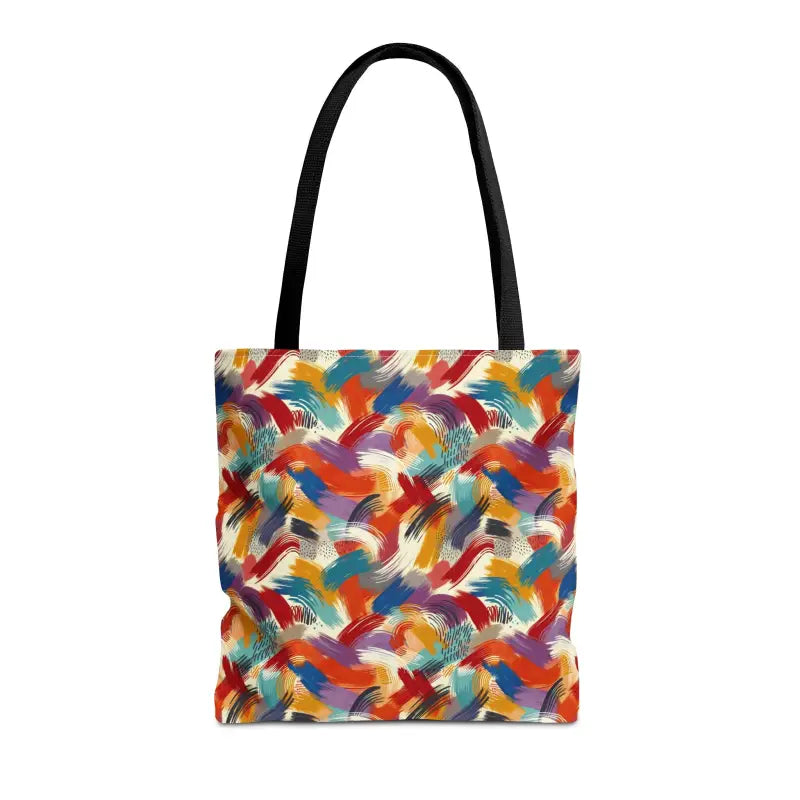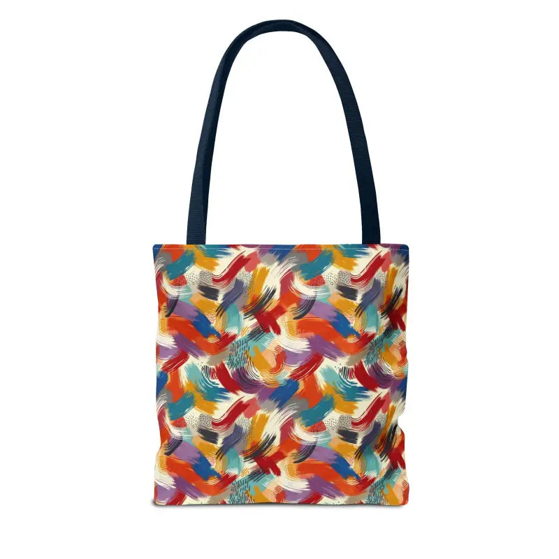 Print: Vibrant abstract paint pattern with energetic splashes of color, giving your tote an expressive, dynamic look.