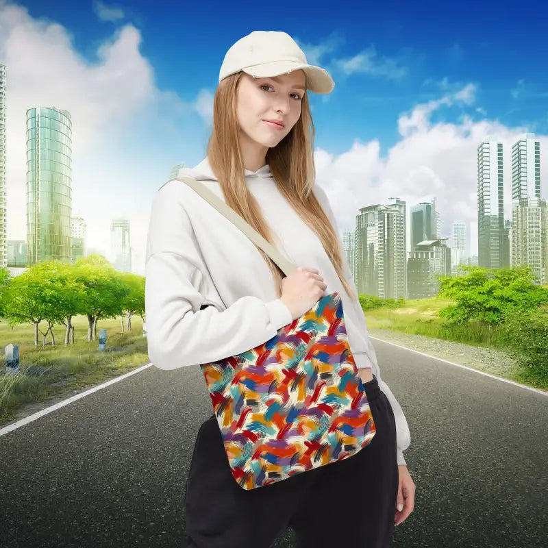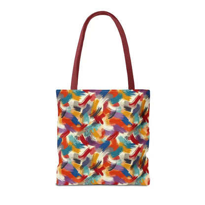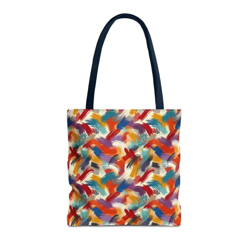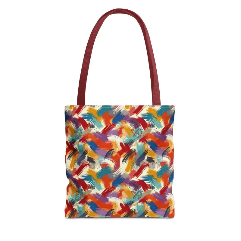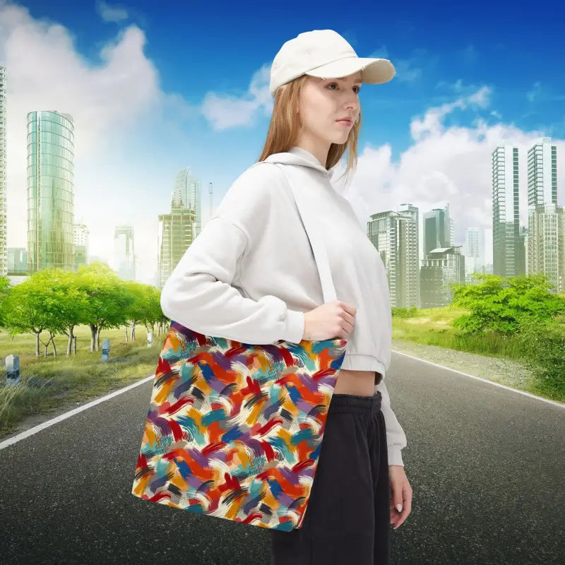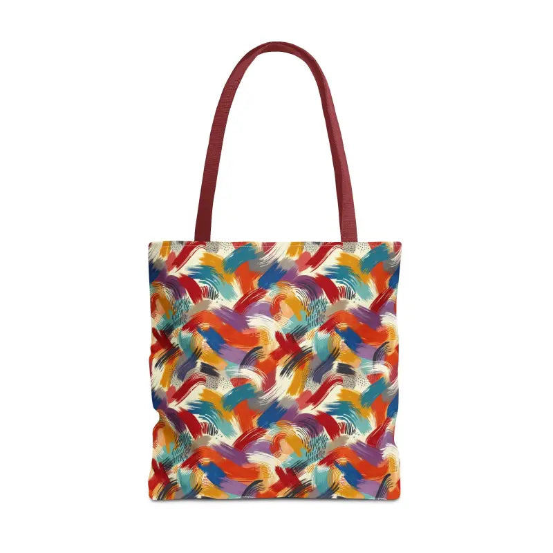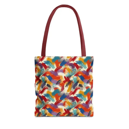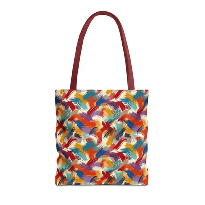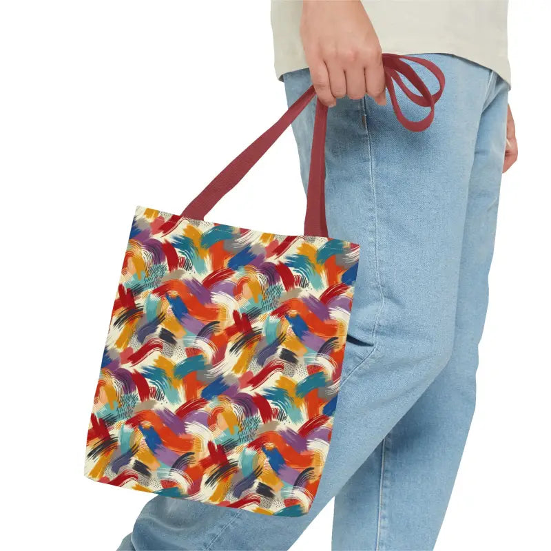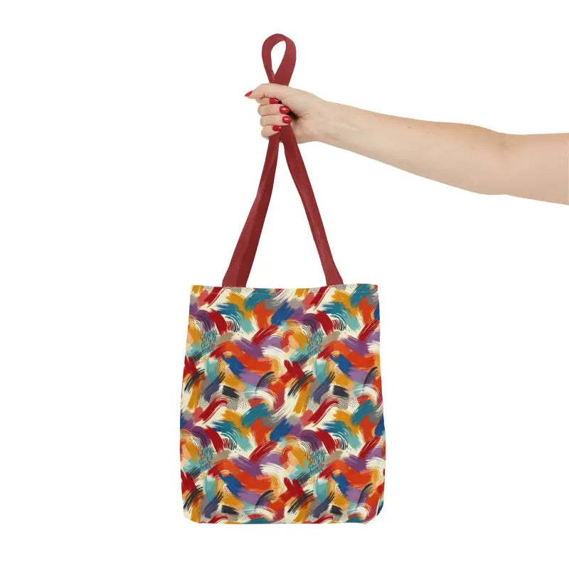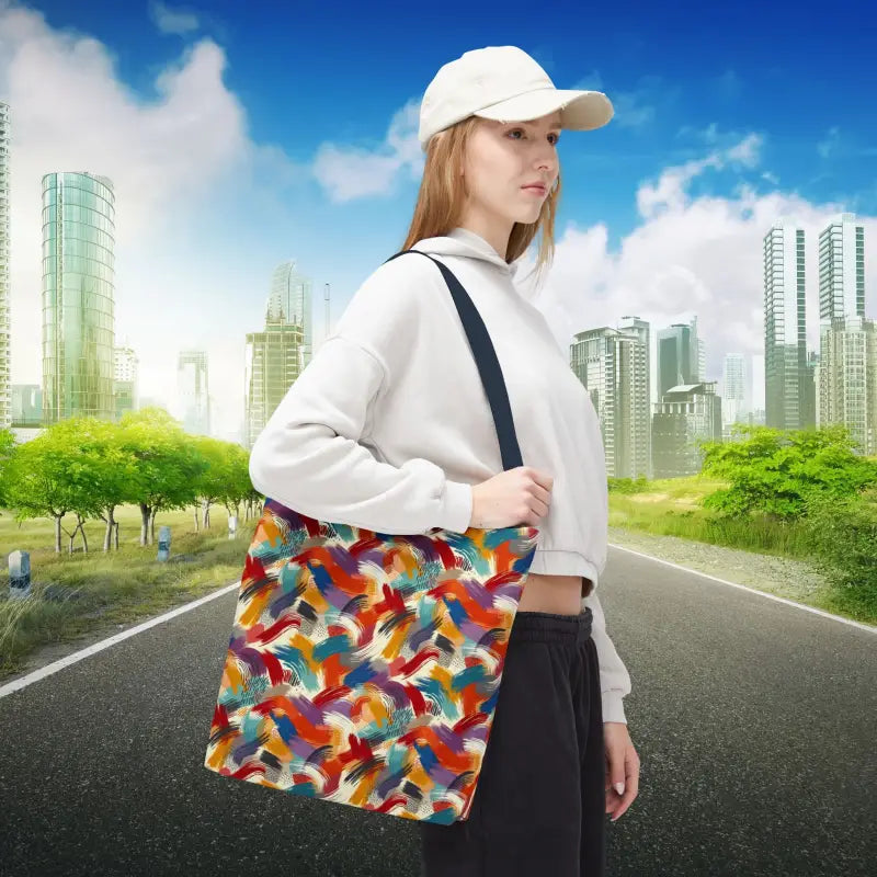Print: Vibrant abstract paint pattern with energetic splashes of color, giving your tote an expressive, dynamic look.