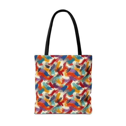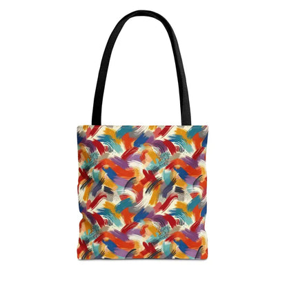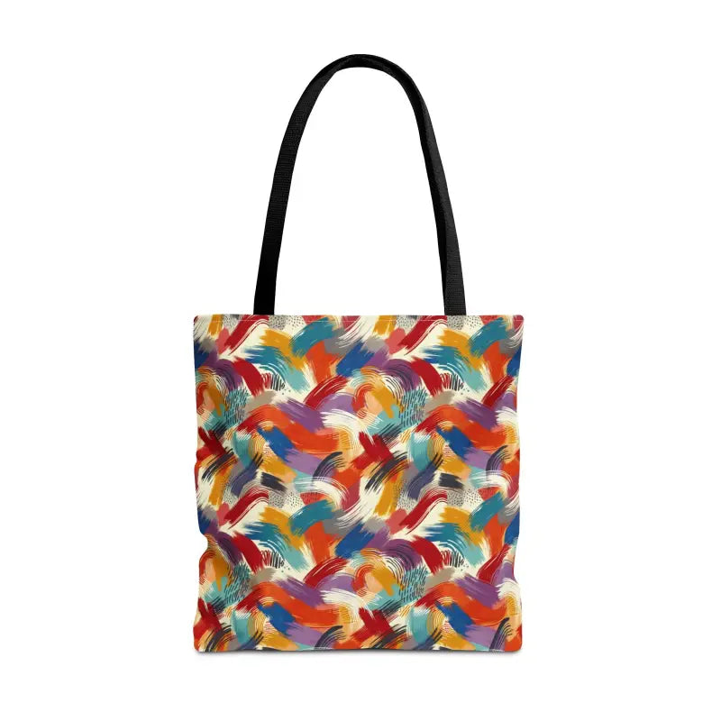 Show off your bold taste in women’s fashion with our abstract paint pattern. This standout all-over print tote bag brings artistry and function together for an effortless statement—say goodbye to boring totes and hello to lasting style! With three size choices, you’ll have the perfect companion for shopping, beach outings, errands, and more. Crafted from strong 100% polyester and finished with comfortable black cotton handles, this tote seamlessly matches style with durability for daily use, season after season.