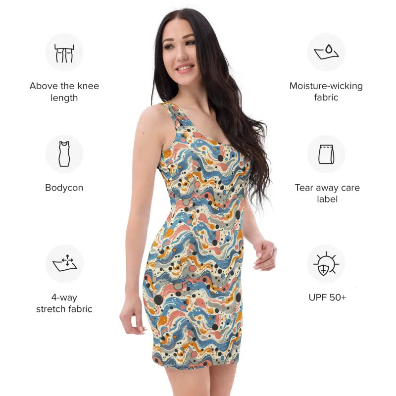 Ready to stand out and feel amazing with a bold fashion statement that boosts your confidence instantly. This Abstract Swirls bodycon dress is designed to accentuate your curves while delivering comfort and style all day long.