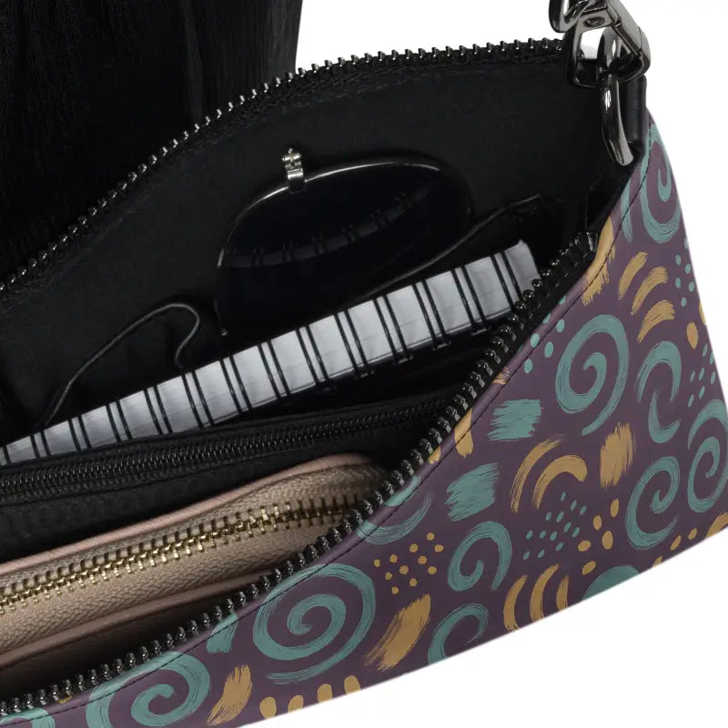 Feel the freedom of a hands-free adventure with this luxe faux leather crossbody bag featuring dark gray hardware that catches every glint of light as you move. Imagine soft ivory swirls merging with vivid charcoal gray hues, a modern art vibe whispering elegance against your side.