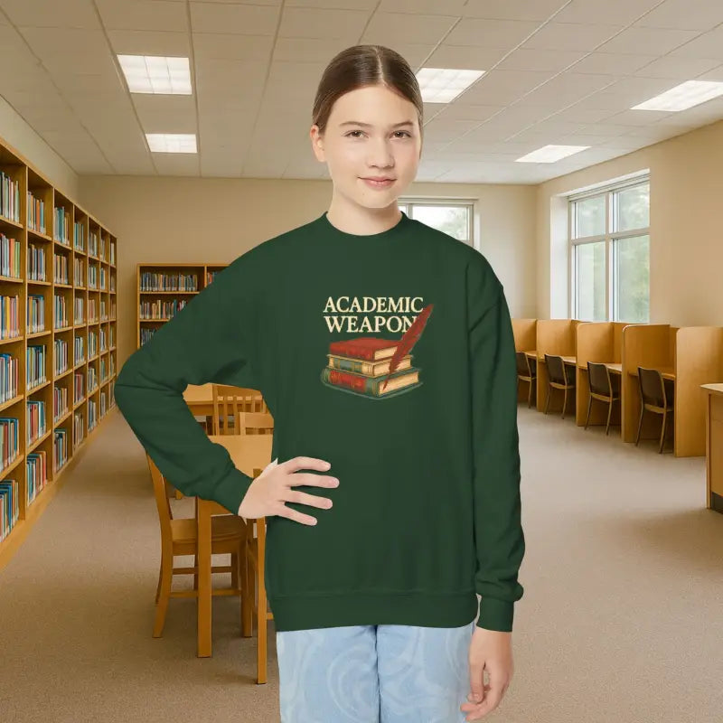 Youth Crewneck Sweatshirt Academic Weapon For Book Lovers - DipaliZ