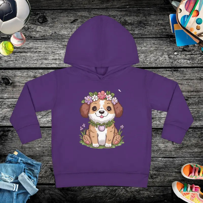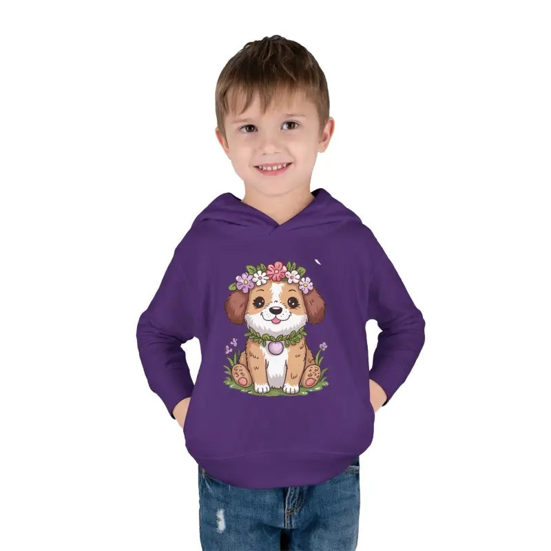 Introducing the ultimate pullover fleece that brings endless warmth and joyful style to your toddler’s wardrobe. This adorable floral dog pullover fleece hoodie is an absolute must-have for little ones who relish in comfort and fun. Designed with a playful and stylish print, the floral dog hoodie features a cute and captivating graphic that instantly delights and stands out. Every time your child slips into this cute pullover fleece, they’re ready for an adventure, whether playing outdoors, enjoying family outings, or simply snuggling up at home.