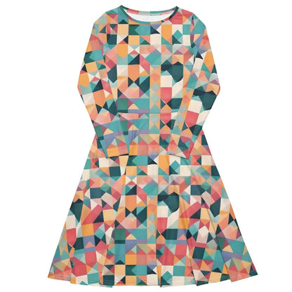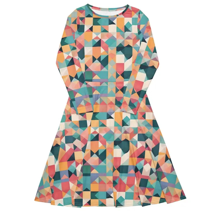 Transform your wardrobe with this sleeve midi dress not just as an outfit, but as a vibrant statement piece that redefines elegance while providing superior comfort. Whether you are heading to a casual get-together or a special event, this long sleeve midi dress with pastel geometrical shapes is your perfect companion. Embrace the trend, celebrate your style, and let every occasion be a fashion event. Shop now and experience the blend of art and modern flair that this polyester elastane dress offers.