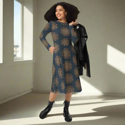 Print Long Sleeve Midi Dress - Artistic Comfort Style - DipaliZ