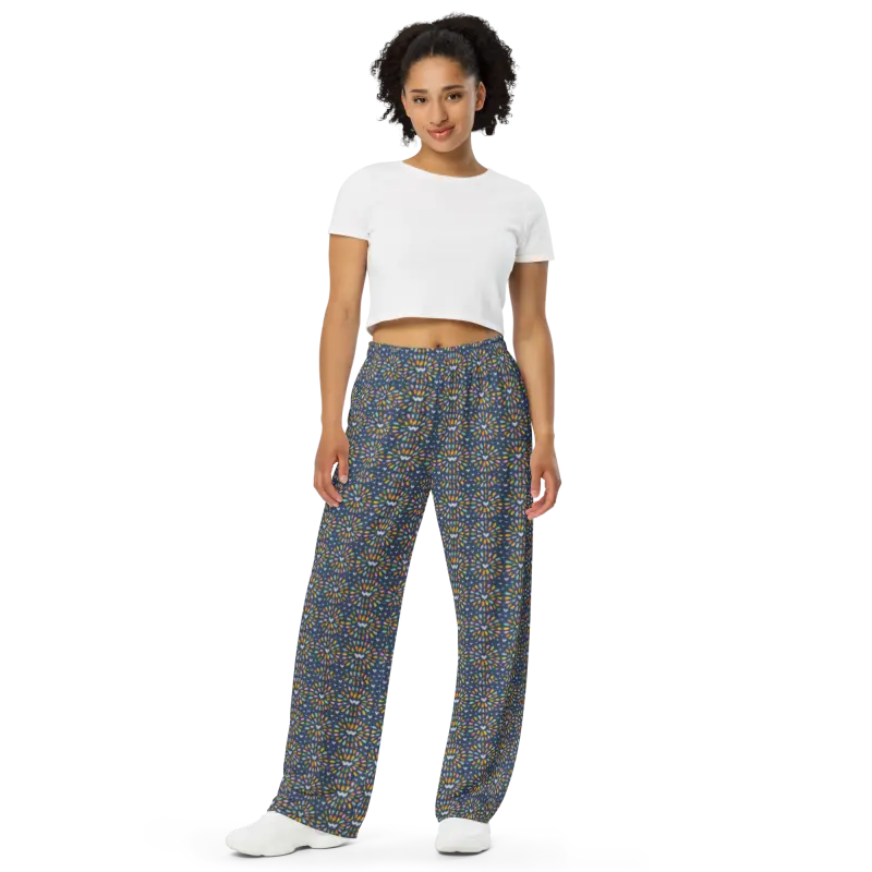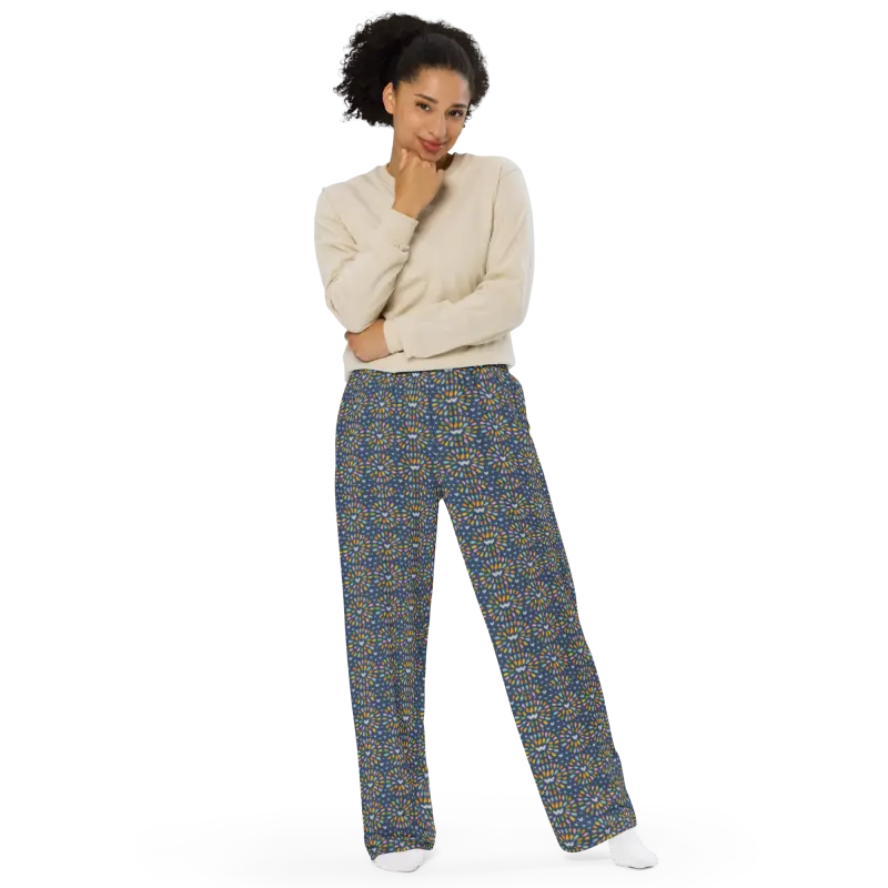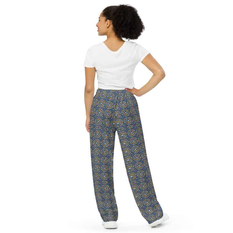 Wide Leg Pants - Geometric Blue Comfort Fit - DipaliZ