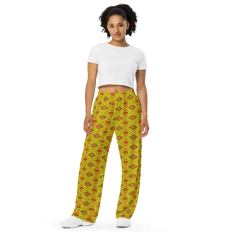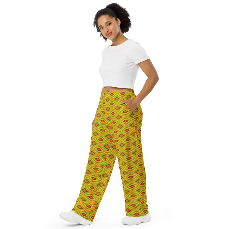 Stop settling for uncomfortable pants and boring basics. These yellow wide leg pants are designed to keep you looking sharp and feeling cozy, whether you’re lounging at home or stepping out with friends. The geometric pattern turns heads and gets you noticed, while the soft stretch fabric makes sure you stay comfortable all day long. With a flattering relaxed fit, these wide leg pants are stylish enough for anyone craving a trendy yet comfortable vibe in their wardrobe. Make your every day brighter and bolder with this must-have piece in modern women’s fashion.