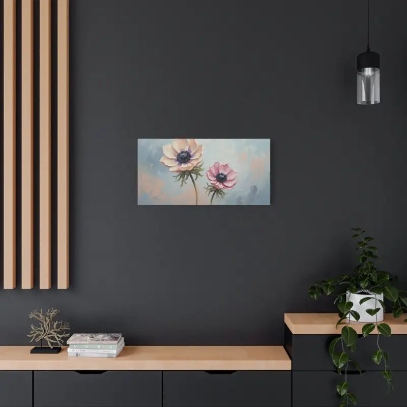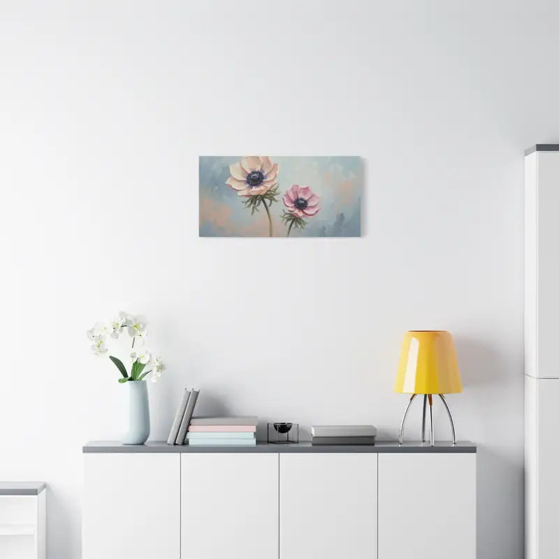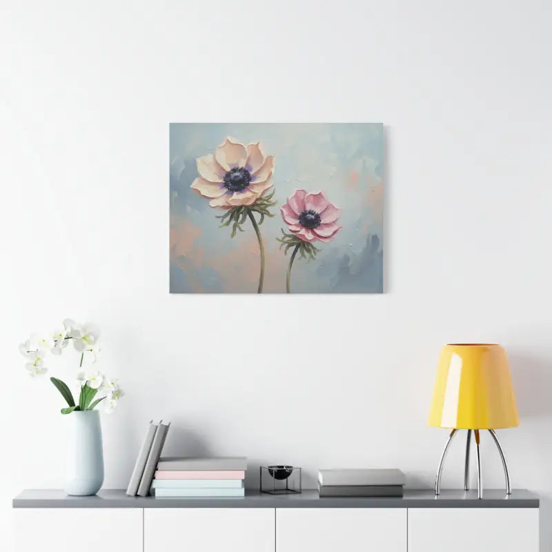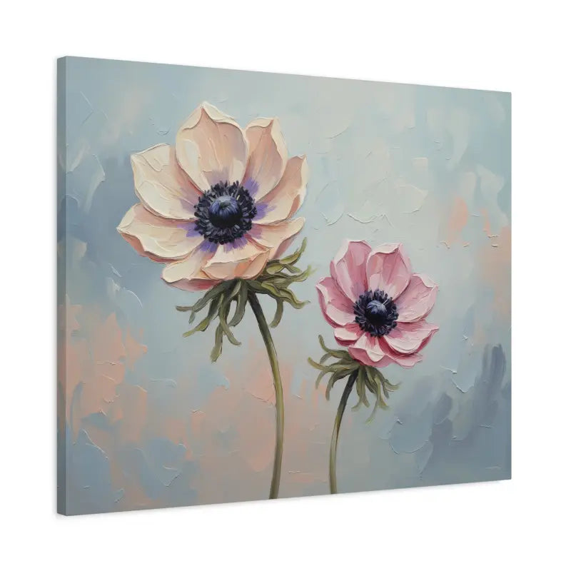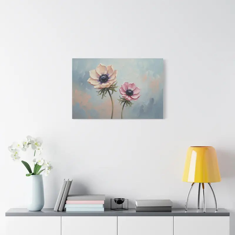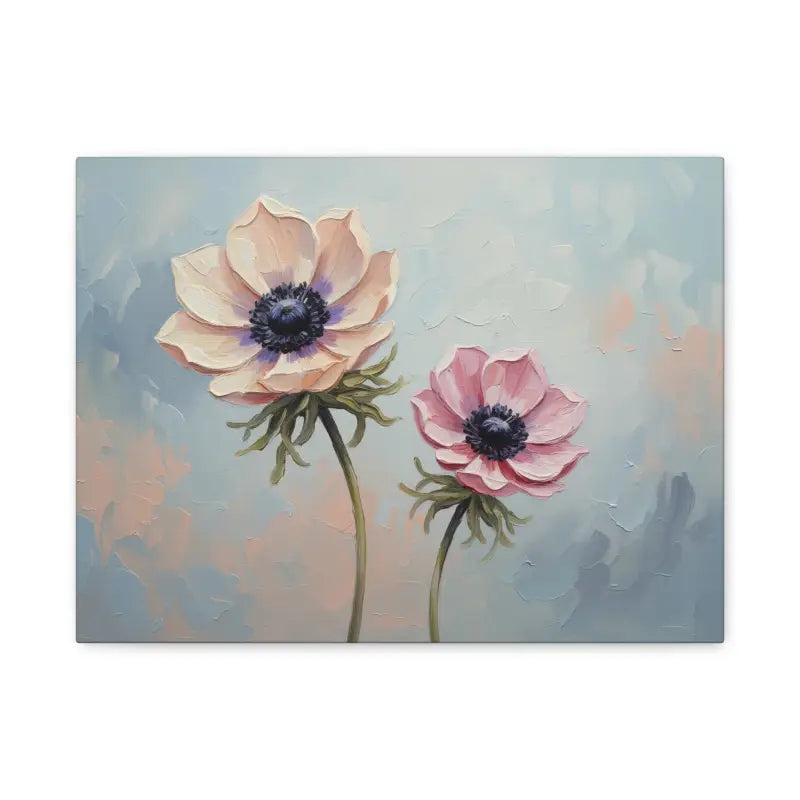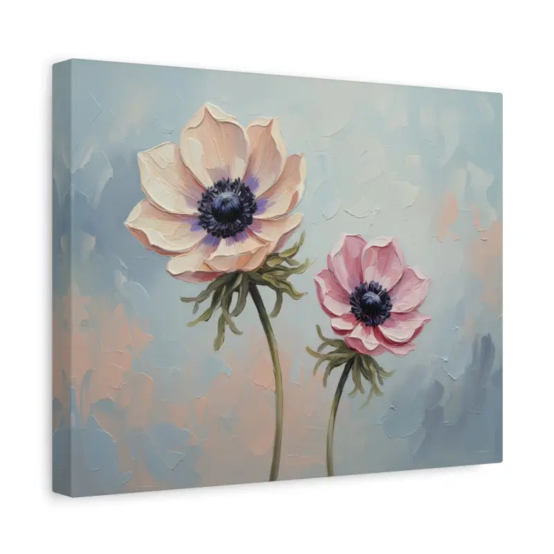Soft pastel petals meet painterly charm in this anemone floral canvas that instantly transforms your space. The gentle brushwork and soothing hues of blush, cream, and sky blue create a calming story on your wall, framed beautifully in natural pine.