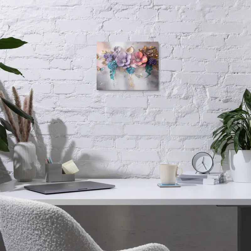 Soft petal shapes dance across the aluminum surface, blending art and texture for a look that feels both timeless and contemporary. Perfect for anyone who loves modern lifestyle products online, this artwork adds depth, shine, and character to your décor.
