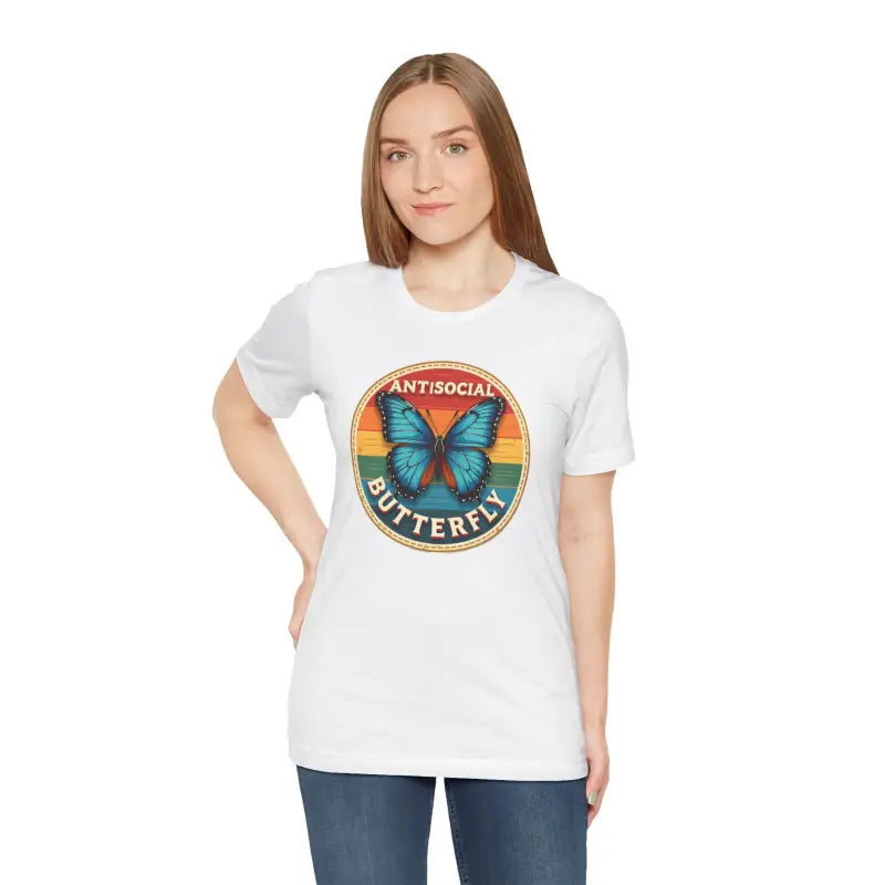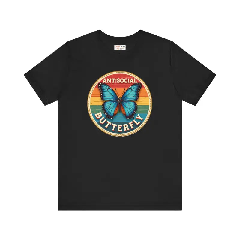 Amp up your style and showcase your personality with this one-of-a-kind antisocial butterfly tee. Perfect for casual outings or laid-back days, this unique piece helps you make a statement in every situation. Grab your antisocial butterfly graphic tee today and let your wardrobe do the talking!
