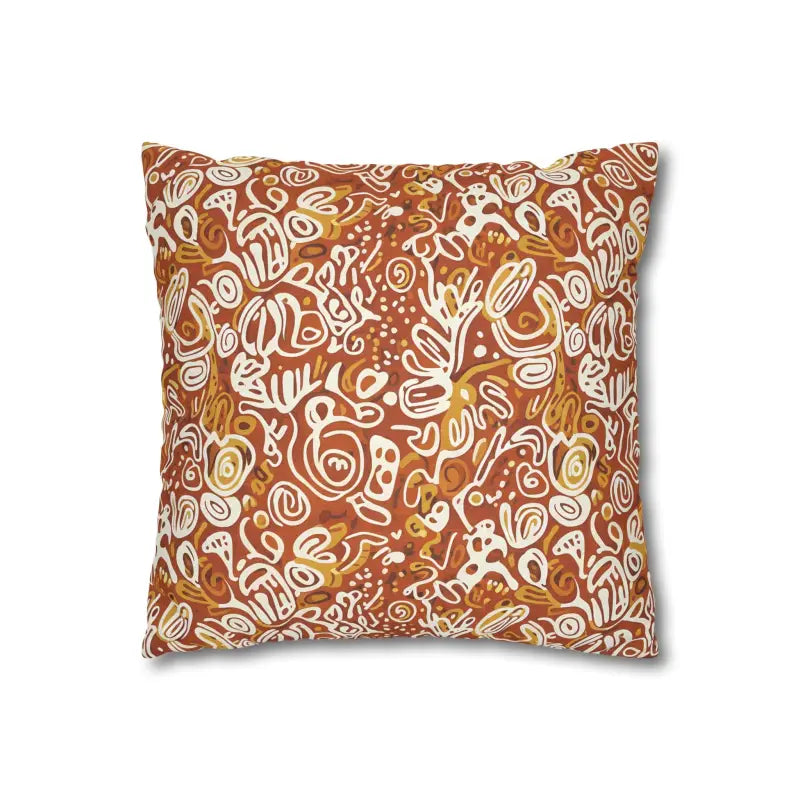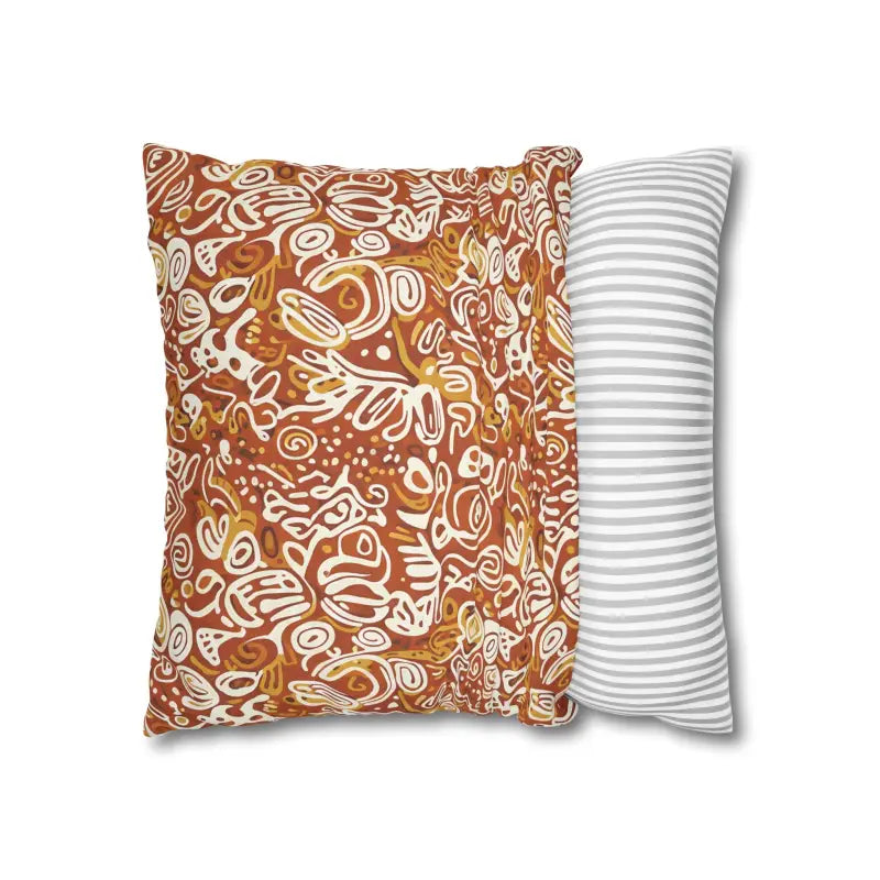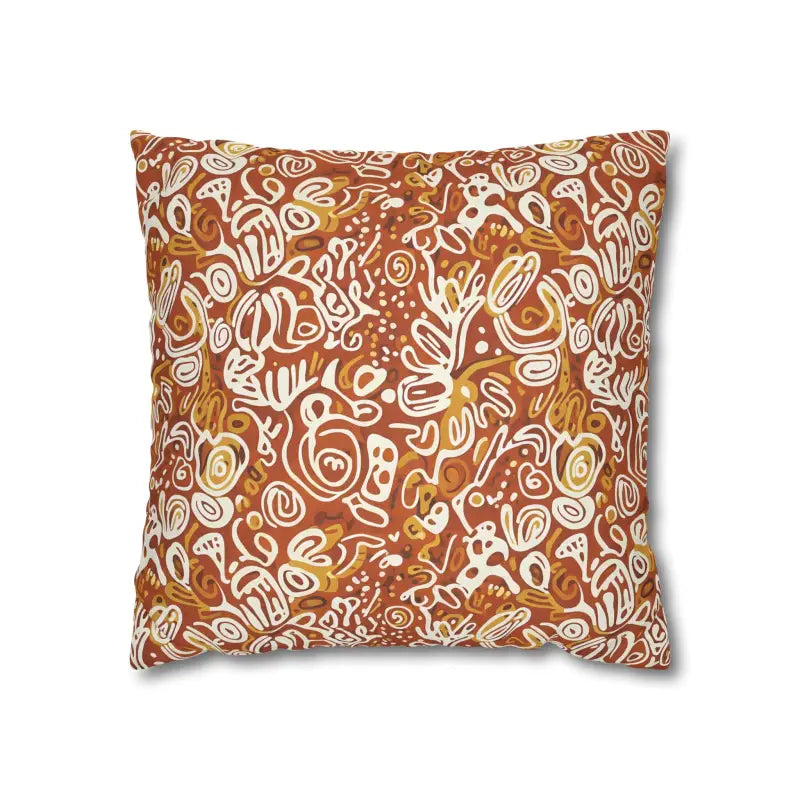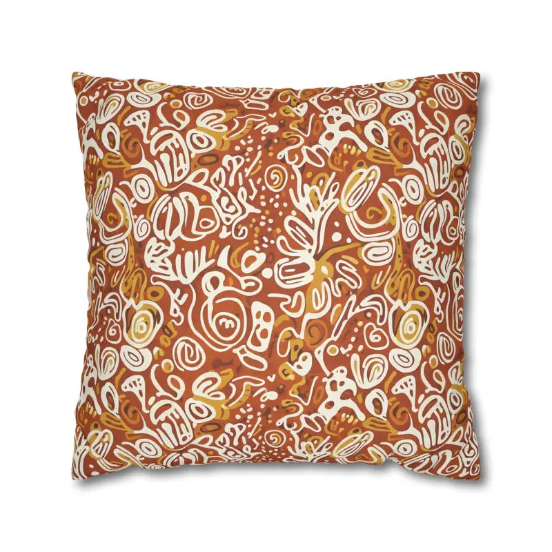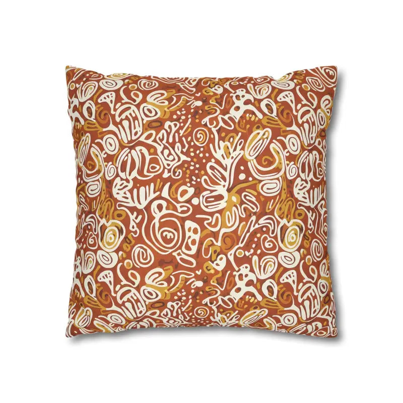 Picture rich terracotta swirls mingling with golden ochre tones, all playfully accented by ivory doodle motifs that feel wonderfully organic. This boho abstract square design wraps around both sides, creating a seamless artistic statement piece.