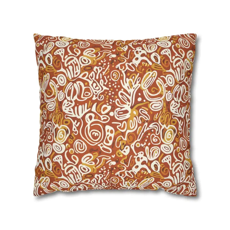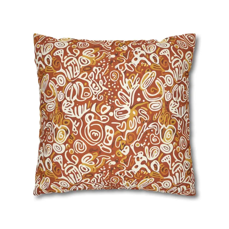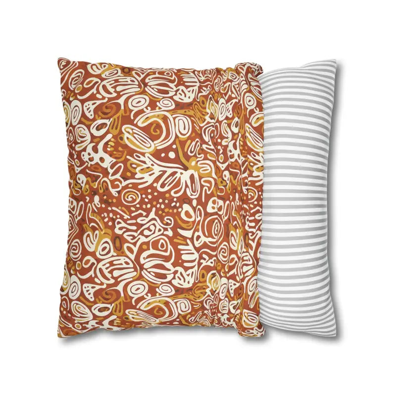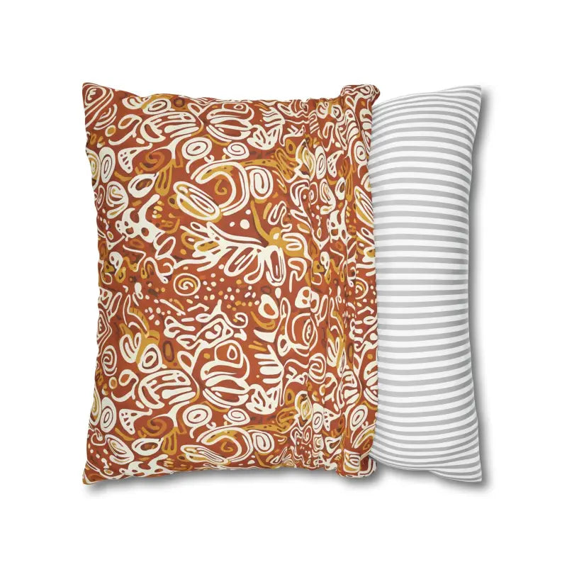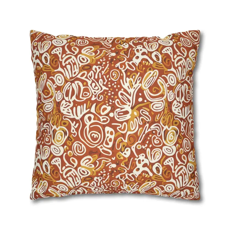 Picture rich terracotta swirls mingling with golden ochre tones, all playfully accented by ivory doodle motifs that feel wonderfully organic. This boho abstract square design wraps around both sides, creating a seamless artistic statement piece.
