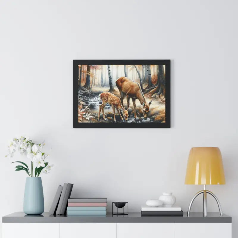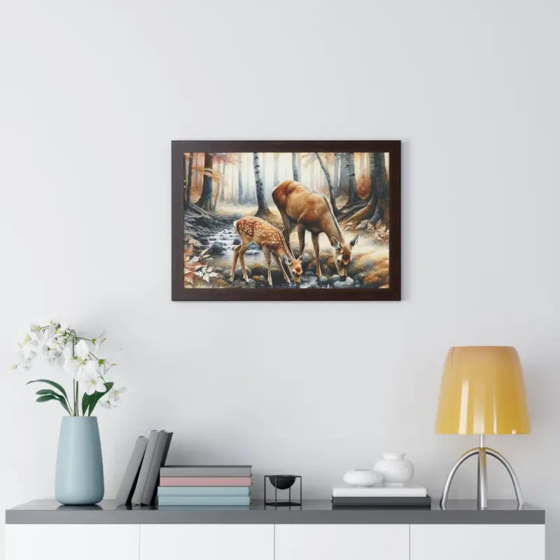 Transform your space with the magic of nature and the warmth of autumn. This framed work of art brings the serene beauty of a deer-filled forest right into your home, turning any wall into a peaceful retreat.