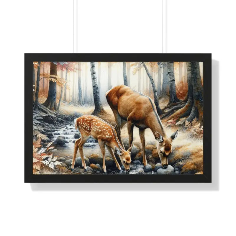 - Eye-catching forest framed poster featuring intricate deer and natural elements.