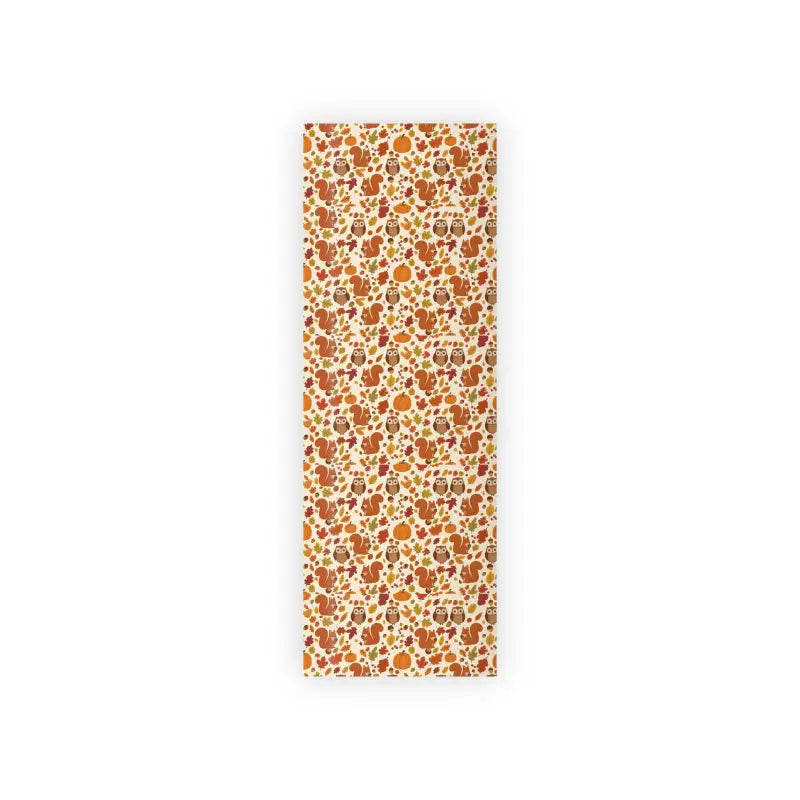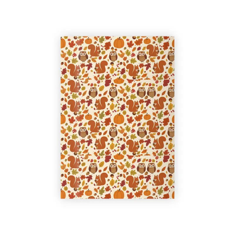 Imagine unwrapping pure autumn magic as you smooth this 95gsm fine art satin wrapping paper across your gift—crisp leaves crunch under cozy rust hues, squirrels peek from amber pumpkins, and owls nod in a mossy forest dreamscape. The soft cream backdrop feels like a warm sweater against your fingertips.