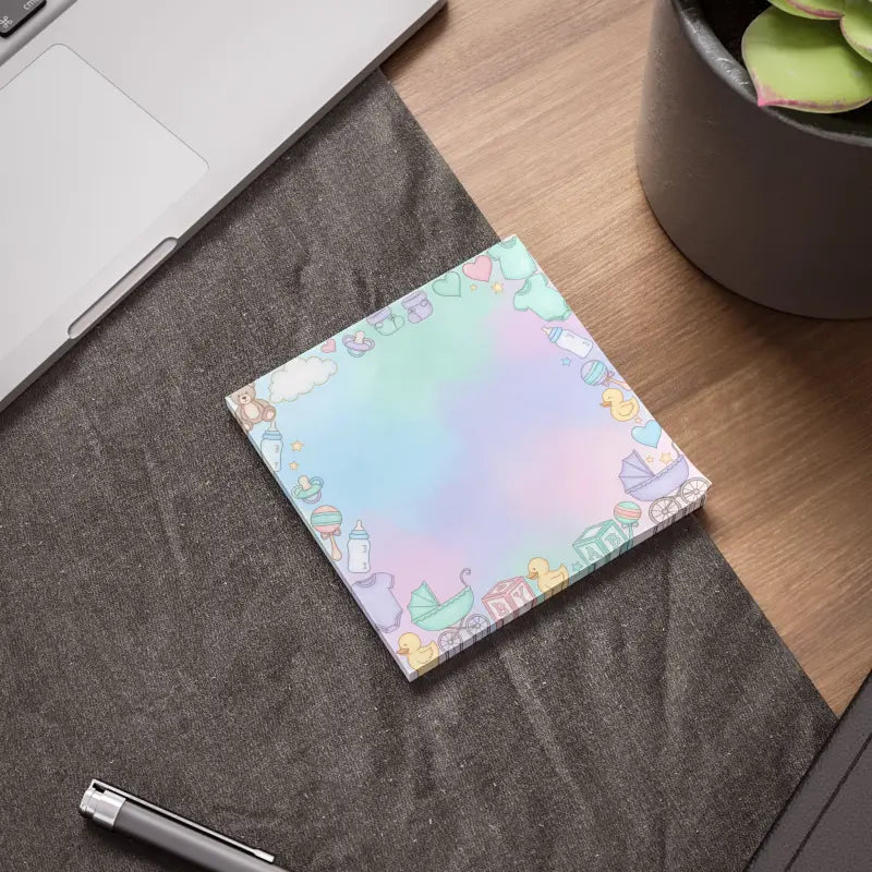 Celebrate every sweet moment with these adorable baby shower pastel border Post-it Notes that bring nursery magic right to your fingertips. Whether you're planning the ultimate baby shower, organizing a nursery, or capturing precious to-do lists during those blurry newborn days, these charming note pads add a splash of joy to every scribble. Perfect for moms-to-be, party planners, and anyone who loves cute nursery icons that make everyday tasks feel extra special.
