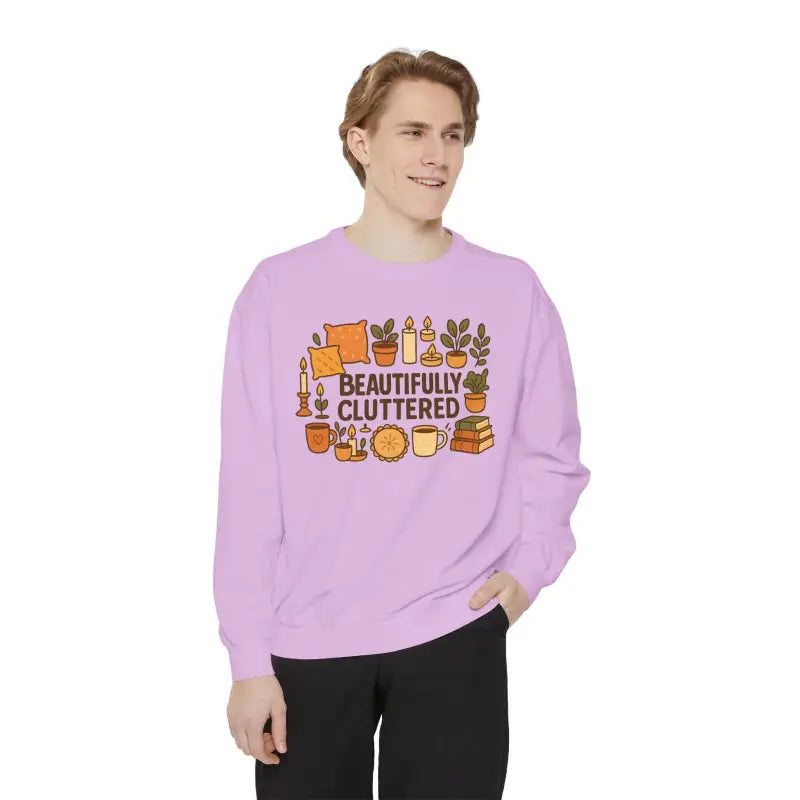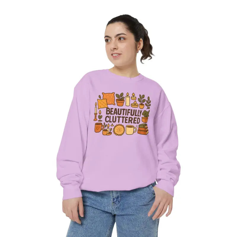 Plant Lovers Cozy Must Have Sweatshirt Cozy up in this beautifully cluttered unisex garment-dyed sweatshirt that wraps you in warmth and style. Imagine sinking into an afternoon of reading surrounded by your favorite green companions, feeling the soft fabric hug you as sunlight filters through your indoor jungle.