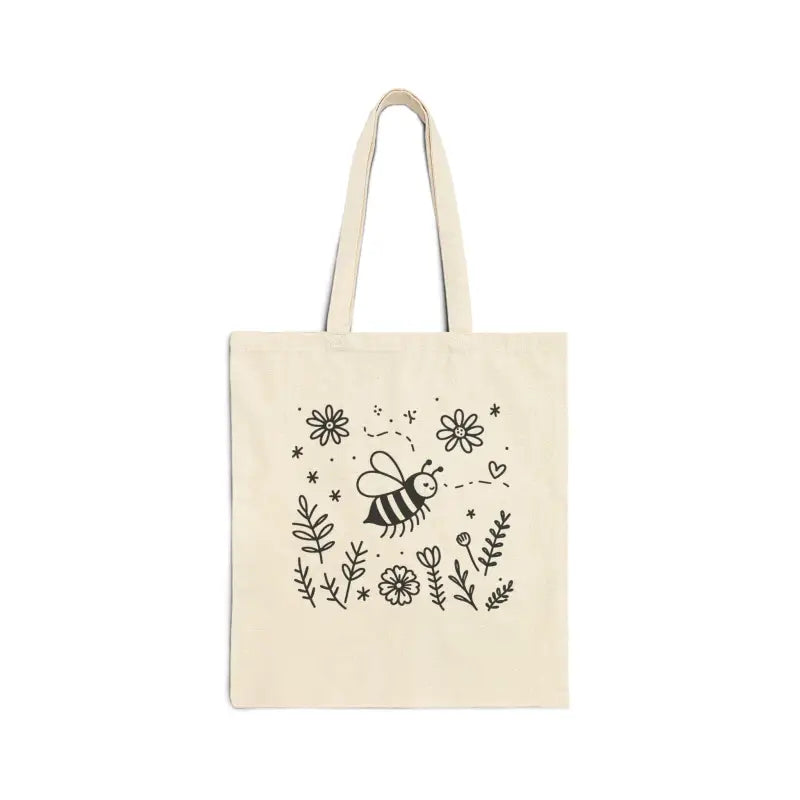 Perfect for busy days or spontaneous adventures, this cotton canvas tote brings whimsy to women’s fashion with its eye-catching bee print. Say goodbye to boring bags and elevate your style while keeping the planet happy. Whether it’s farmers market goodies, groceries, or books, this practical canvas tote bag handles everything with a touch of charm. Experience everyday convenience, reliable strength, and sustainable fashion all at once.