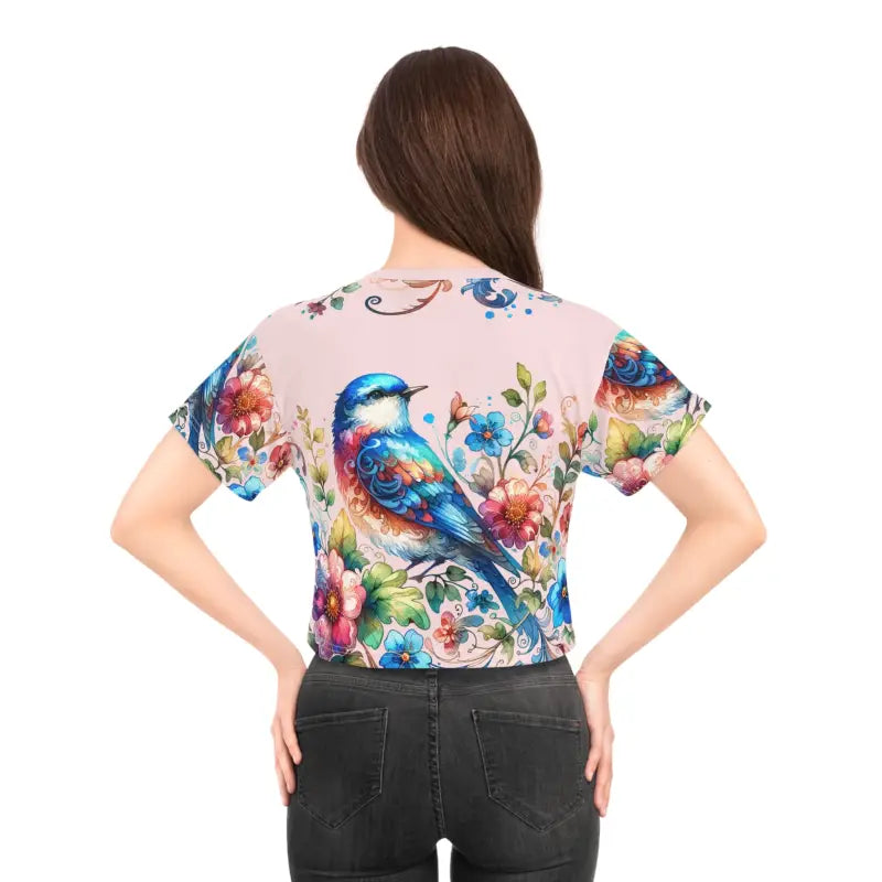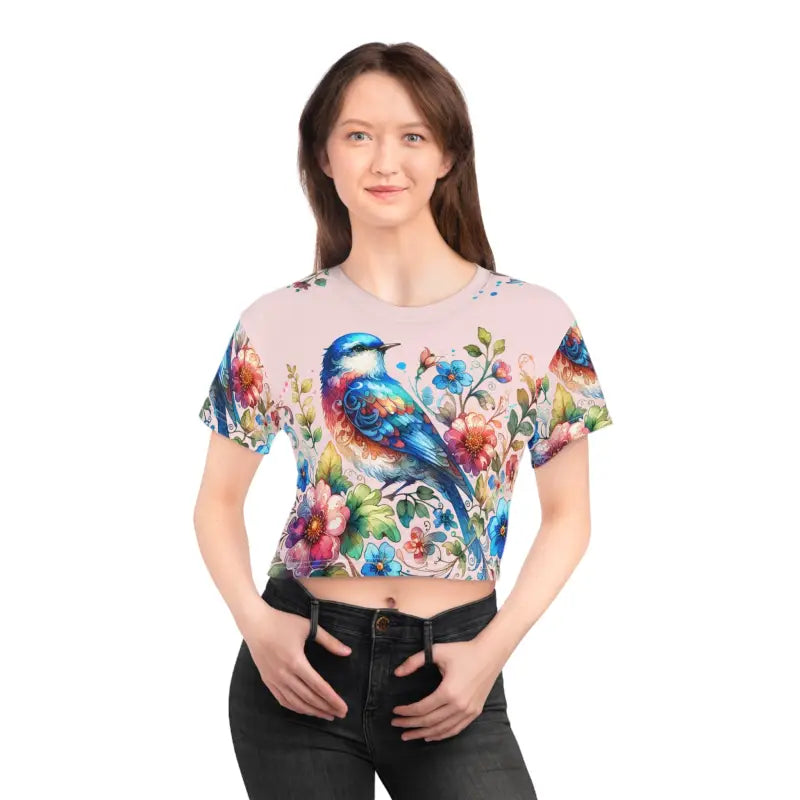 - Unique Design: Let the vibrant dance of birds and flowers on this aop crop tee set you apart from the crowd.