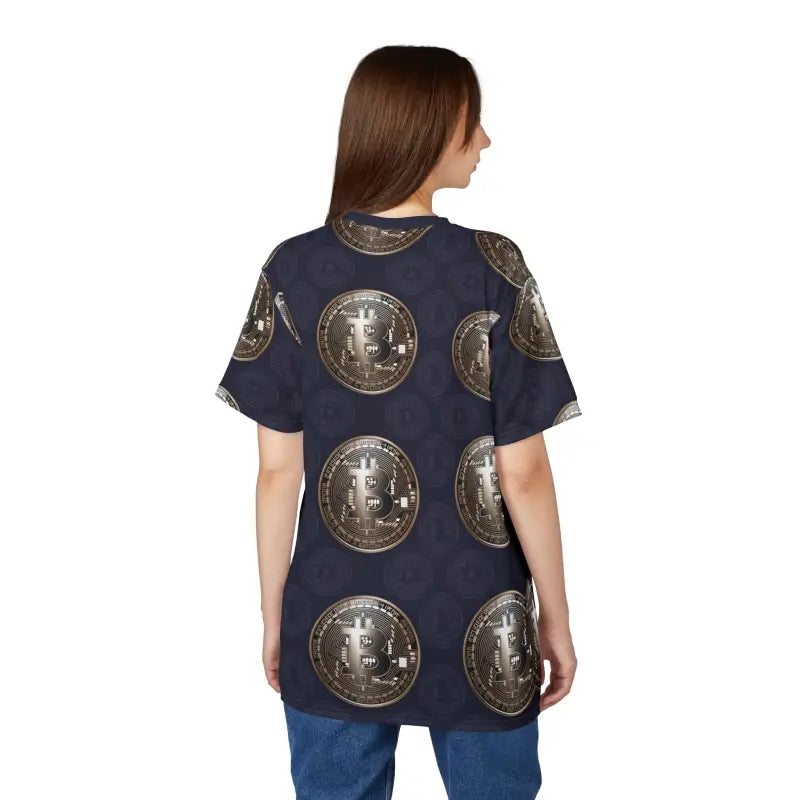 Step into the future of fashion with this incredible Bitcoin Currency Unisex Tee, where style meets innovation head-on. Designed for those who dare to blend sophistication with modern flair, this tee showcases an all-over gold bitcoin currency pattern that screams elegance and cutting-edge appeal. Perfectly crafted to flatter every body type with its unique unisex cut, it promises a chic, effortlessly stylish look. Exclusive microfiber-knit fabric ensures luxurious softness and breathability, whether you’re out on a summer day or layering up. Lightweight yet durable, you'll love the easy comfort of its tagless design.
