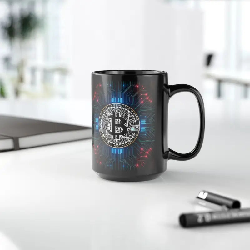 Kickstart your morning energy and fuel your focus with the bold style of the Bitcoin Circuit Black Mug, designed for those who lead and don’t follow.