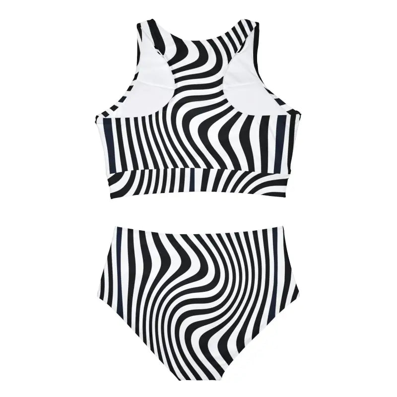 Wave Rider Bikini Set - Ocean Print Sporty Swimwear - DipaliZ