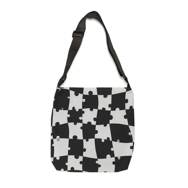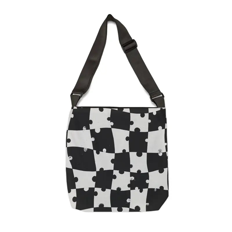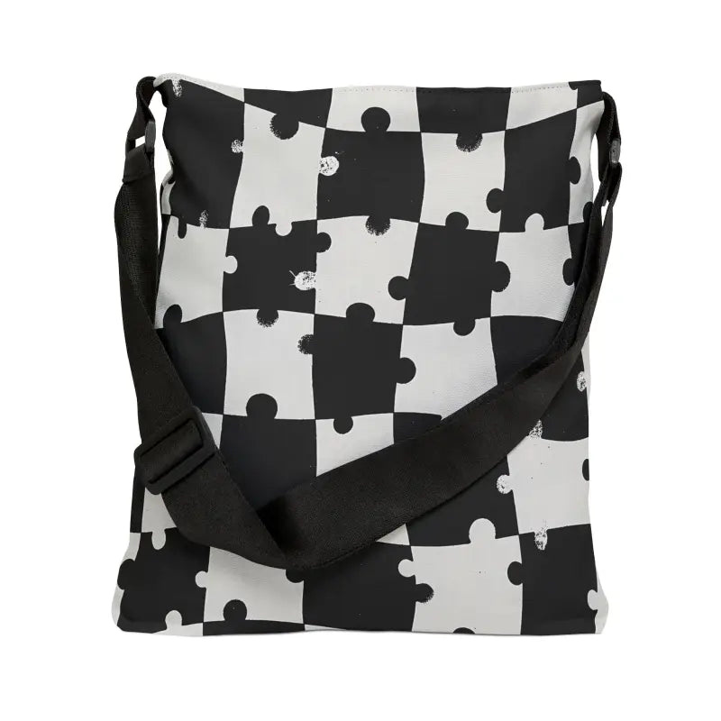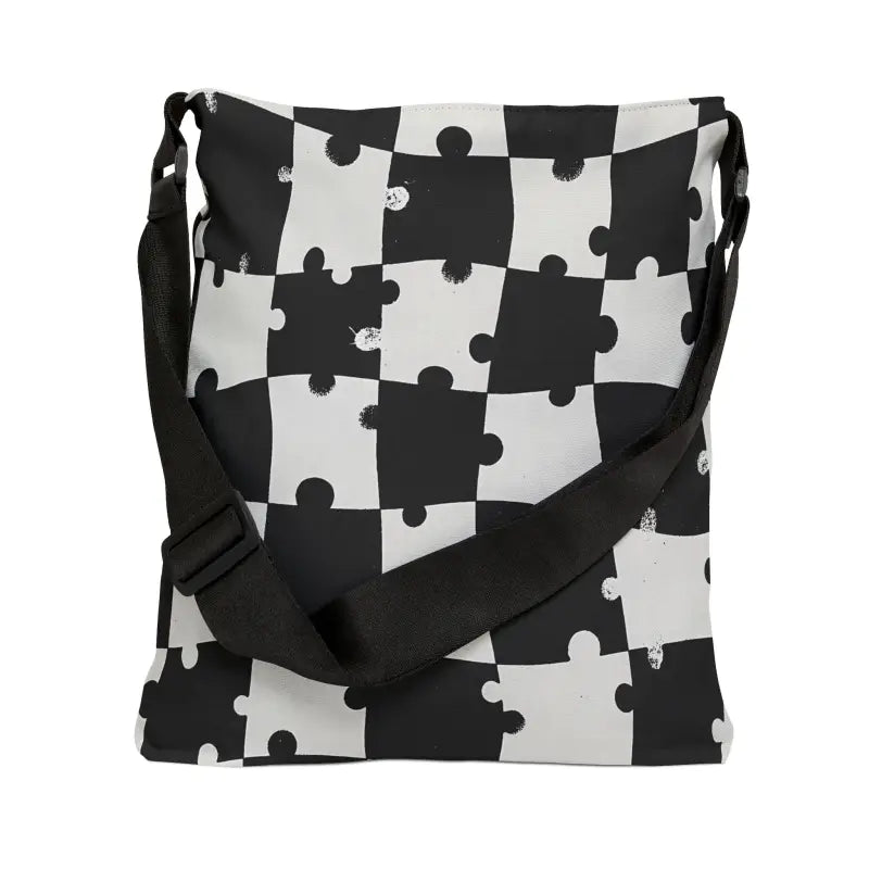 Puzzle Piece Adjustable Tote Bag Black White Street Art - DipaliZ