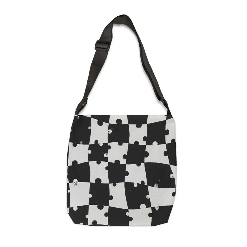 Rock this piece adjustable tote bag at weekend markets, coffee shop hangs, or gallery hops around the city. It's tough enough for daily chaos but styled enough to complement your favorite streetwear looks. Toss in your sketchbook, laptop, or latest craft project and hit the streets with confidence. The monochrome puzzle motif pairs beautifully with everything from denim and sneakers to layered casual fits, making this your new favorite grab-and-go essential that actually looks intentional.
