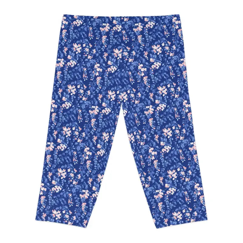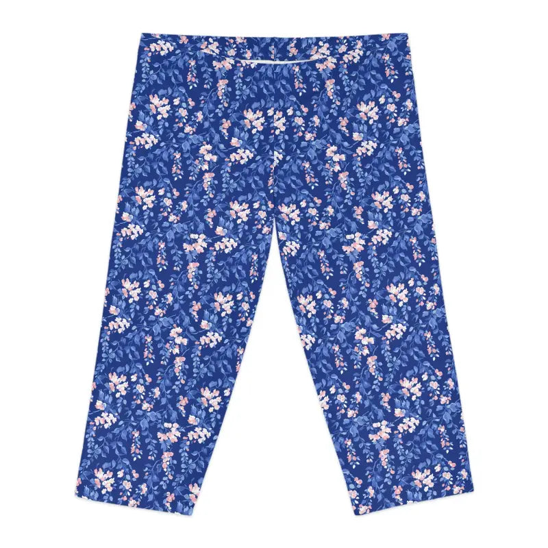Blue Floral Capri Leggings - Spring Garden Print - DipaliZ
